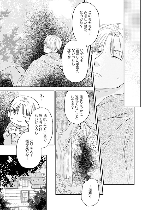 魔獣に襲われた際に使った召喚魔法で現れたのは、黒いモヤモヤとした謎のスパダリ(?)で…。04「俺のかつての護衛騎士が未だに過保護すぎる」