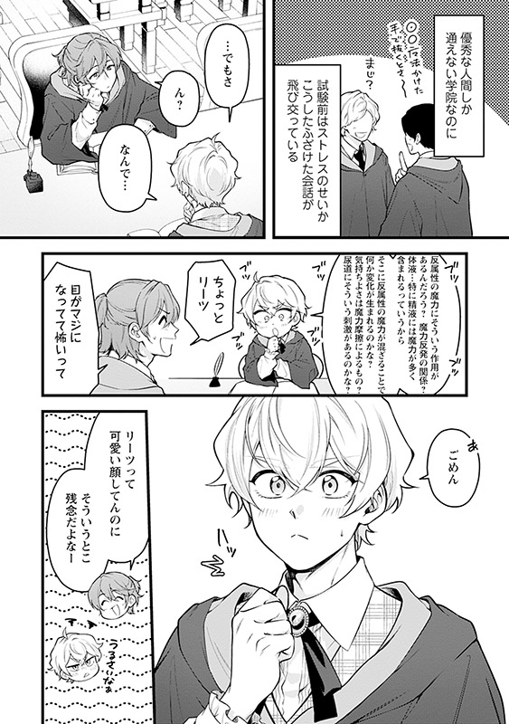 魔法学院に通うリーツは、寡黙なルームメイト・エヴァロスのことが気になっている。