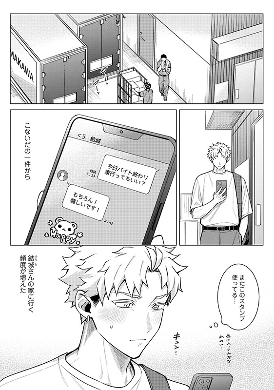 宅配のバイトを始めて2カ月の佐伯は、週に2回程荷物を届けている客・結城が気になっている。