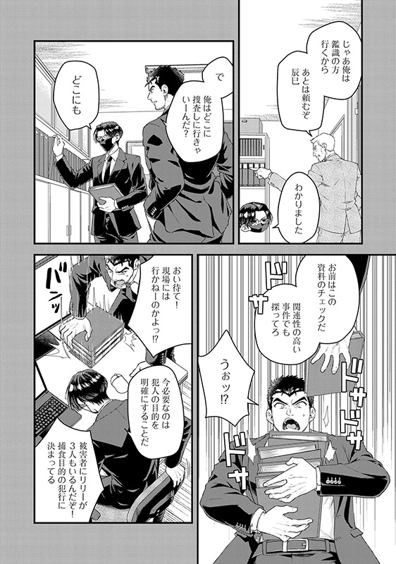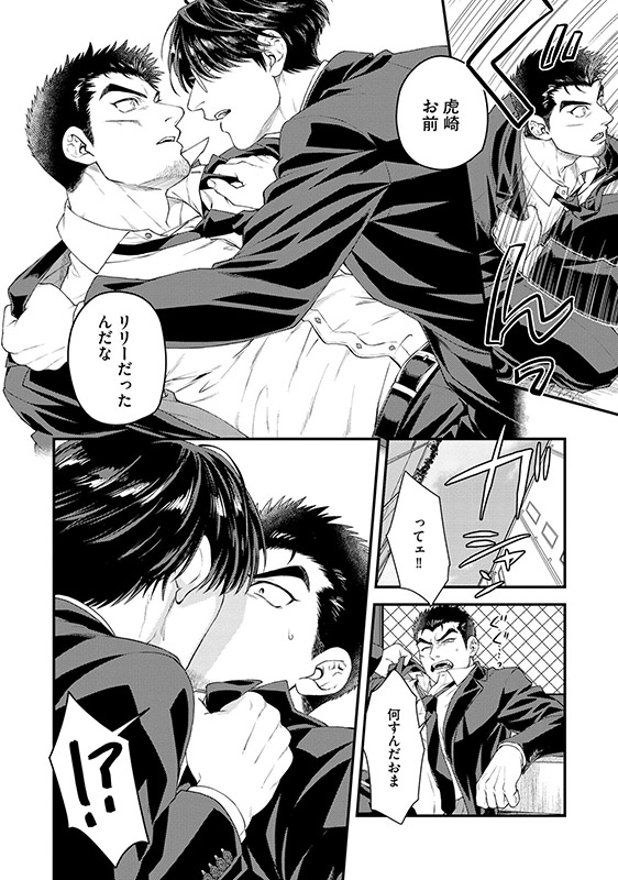 しかし、そんな中、リリーの体臭にあてられた辰巳に虎崎は押し倒され、