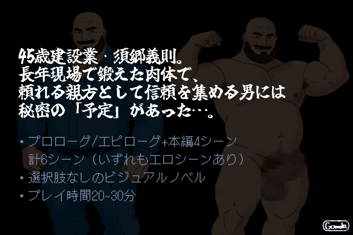 ガチムチの親父がひたすらセンズリするビジュアルノベルです。