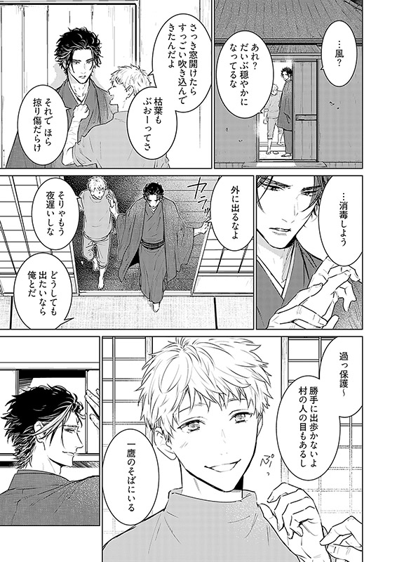 就職を控えた大学生の燈(あかり)は、中学まで住んでいたかつての故郷である山里の村を訪れる。そこには年上の幼なじみ・一鷹(いちたか)がおり、彼の家への訪問は毎年恒例になっていた。ところが、なぜか村人からは「よそ者は災いを運ぶ」と嫌われ、心ないことを言われてしまう。そんな村人達を、地主の息子でもある一鷹は毎回いさめてくれるのだが──。