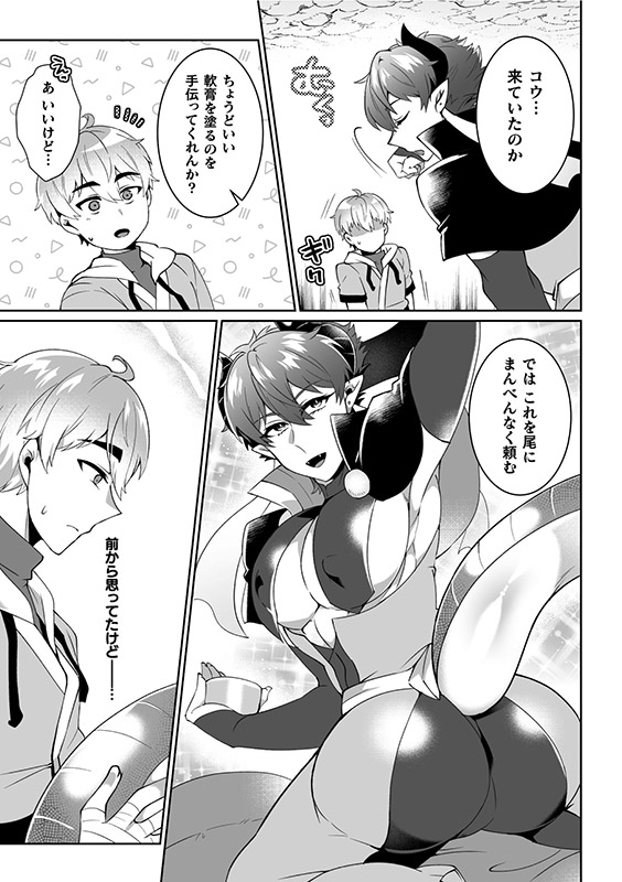 ナギの尻尾に軟膏を塗る手伝いをすることになったが