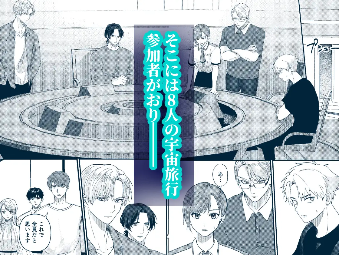 共用ロビーへ駆けつけると、そこには8人の宇宙旅行参加者たちの姿が――。
