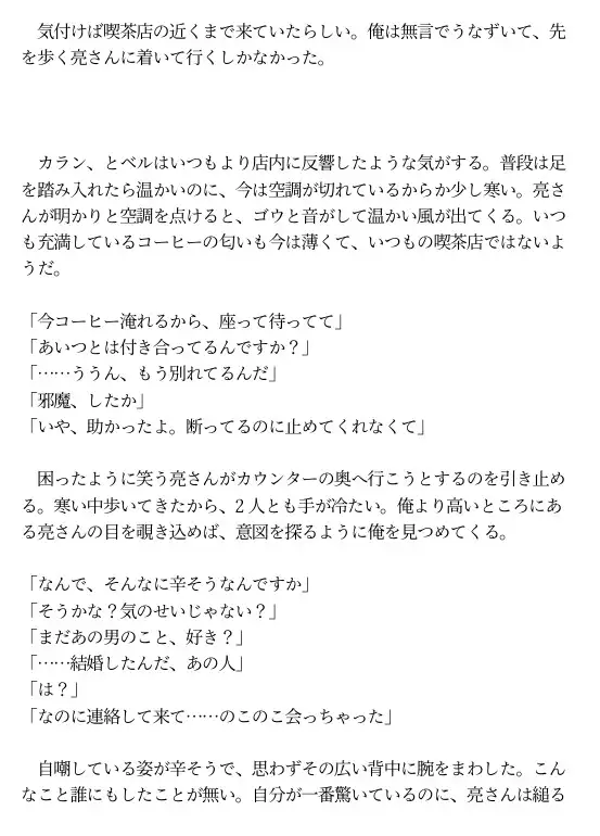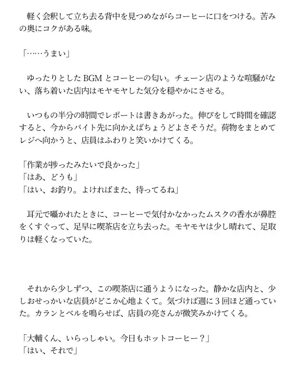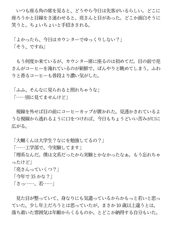 バイトまでの時間潰しに入った喫茶店は居心地が良く、オーナーの亮との会話も気に入って通うことに。常連客になったある日、