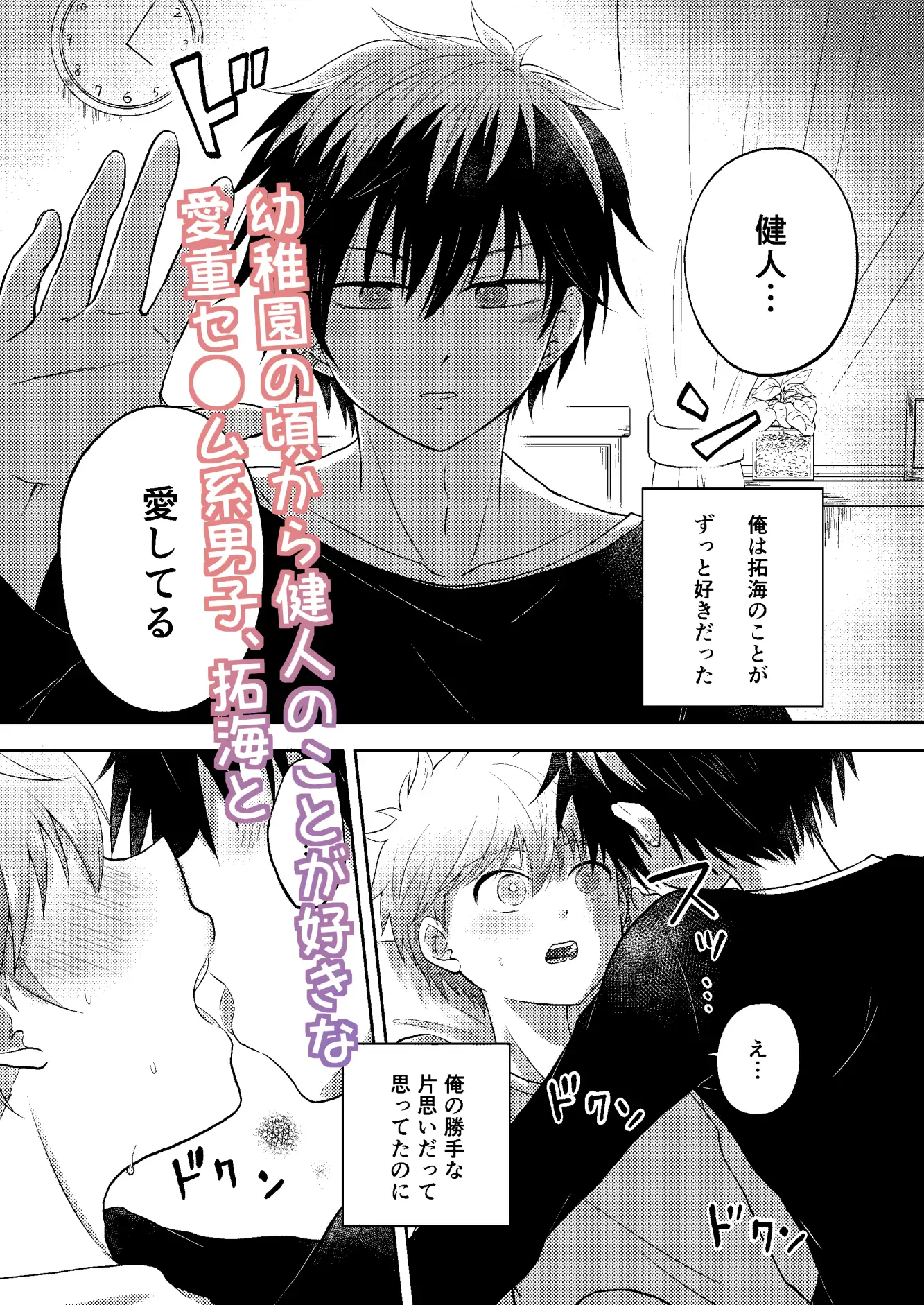 一方拓海はある理由で健人を遠ざけていて…。両片想いの2人がくっ付くまでのお話。甘々純愛エロラブコメ。