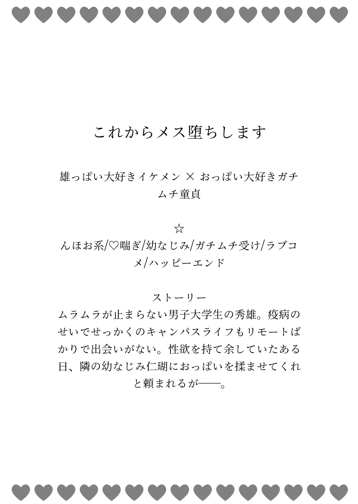 ・胸筋好きなやりチン幼なじみとムラムラが止まらないガチムチ童貞の勘違いラブコメ「これからメス堕ちします」。