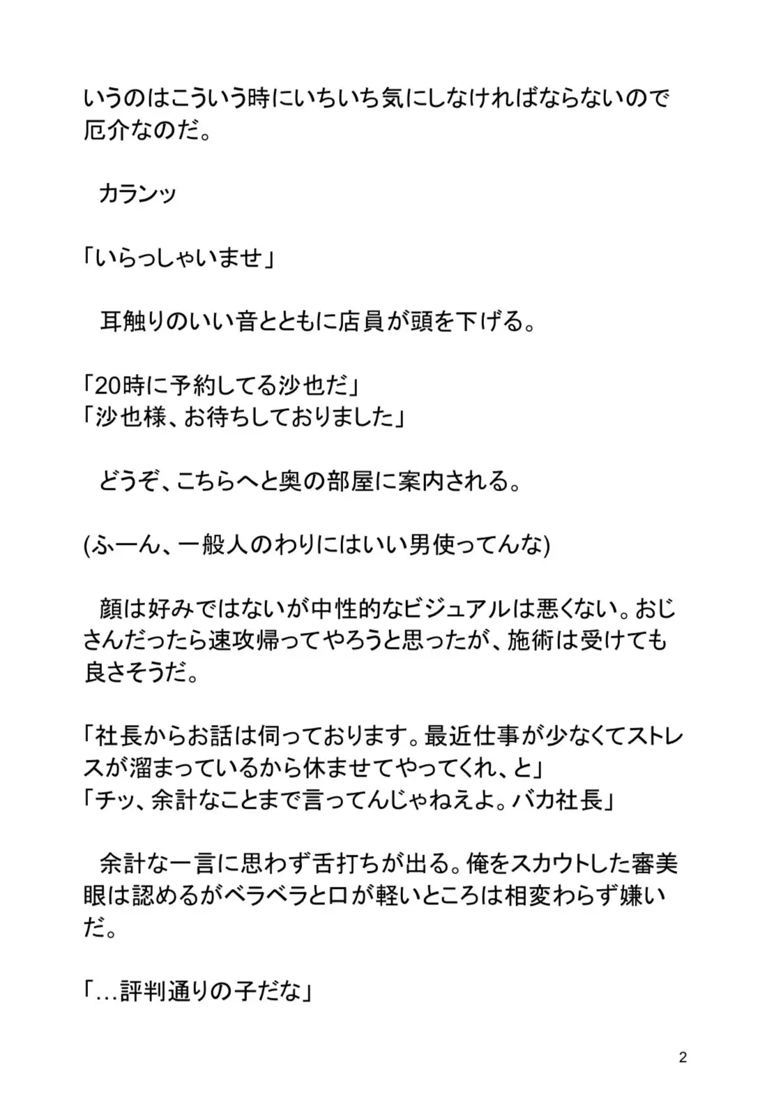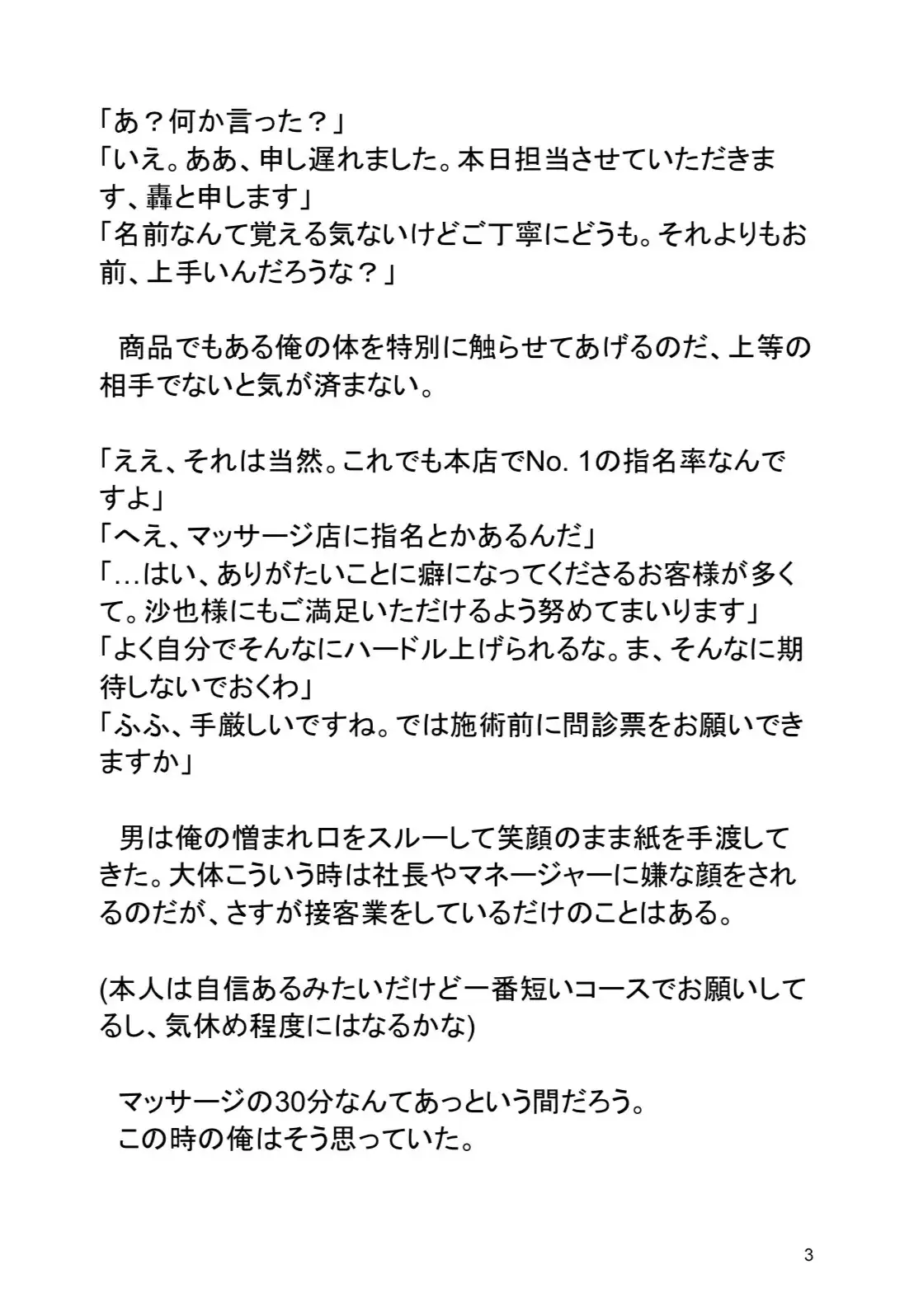 社長に紹介されたマッサージ屋で轟と名乗るイケメンに知らないうちに媚薬を盛られ、特別な施術を受けることに。