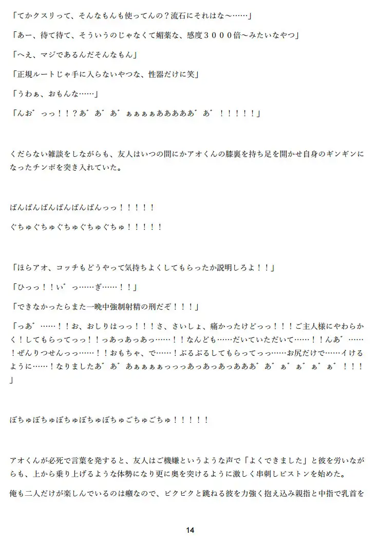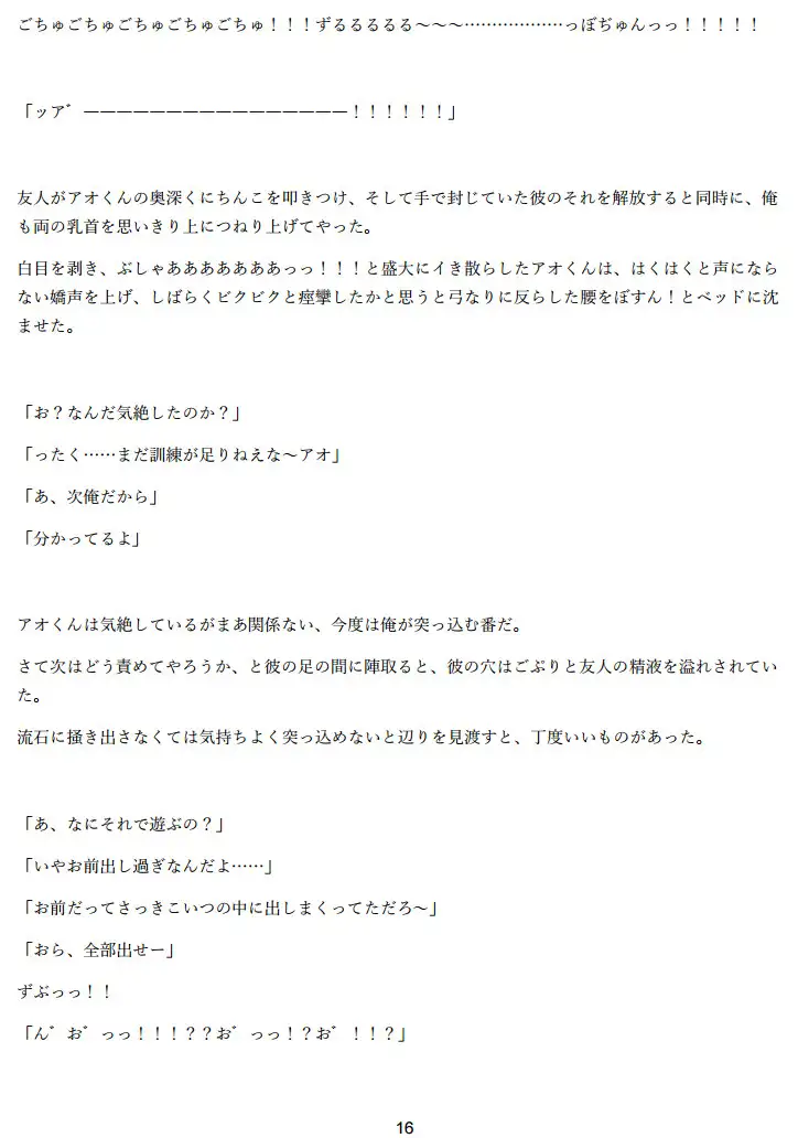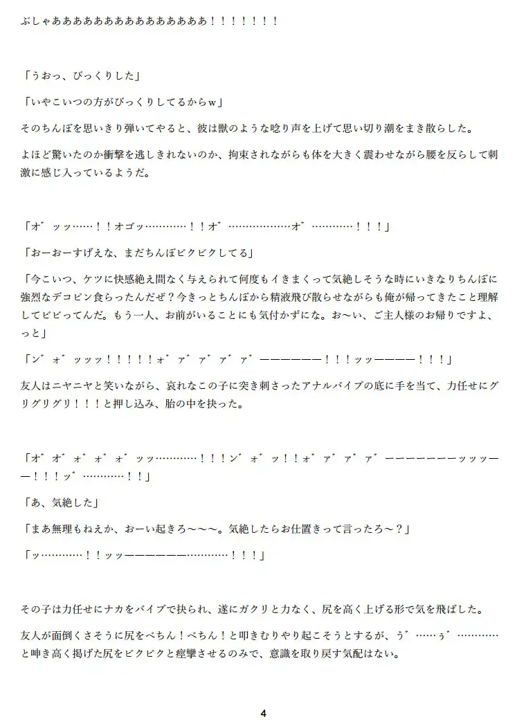 友人に呼ばれ家へ行くと、拘束されバイブを突き入れられたままの男の子がいた。