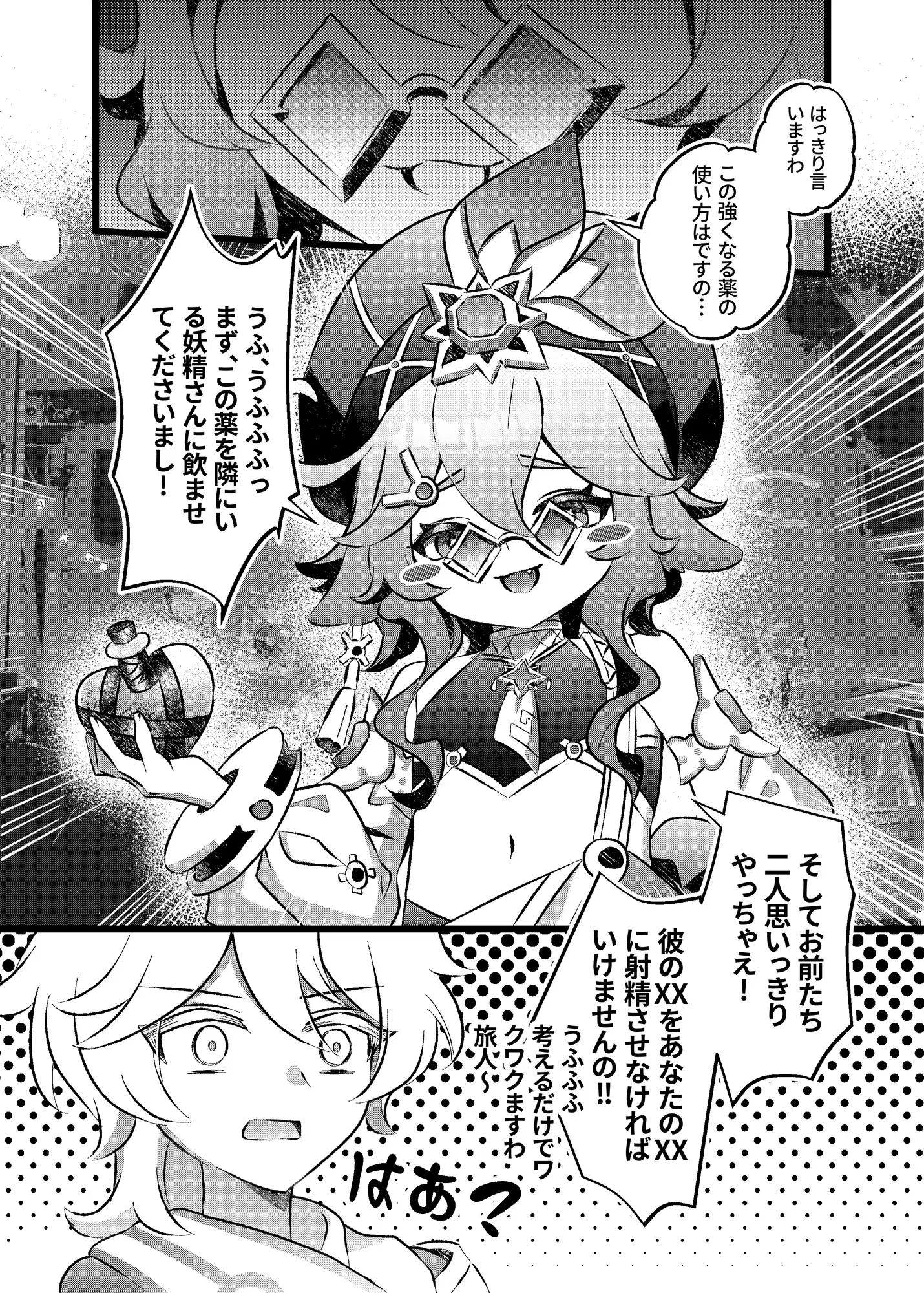 ある日、旅人とフリンズの二人は商人から偶然に強化の薬を手に入れた。まさかその薬は、妖精とエッチをすると強くなるという不思議な薬だった……!?