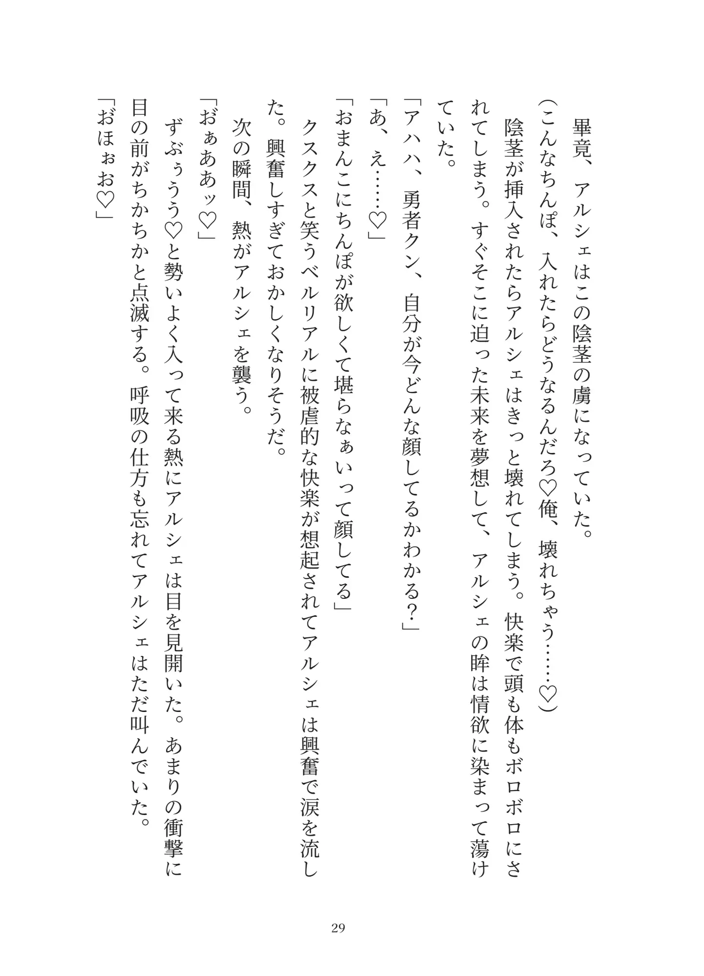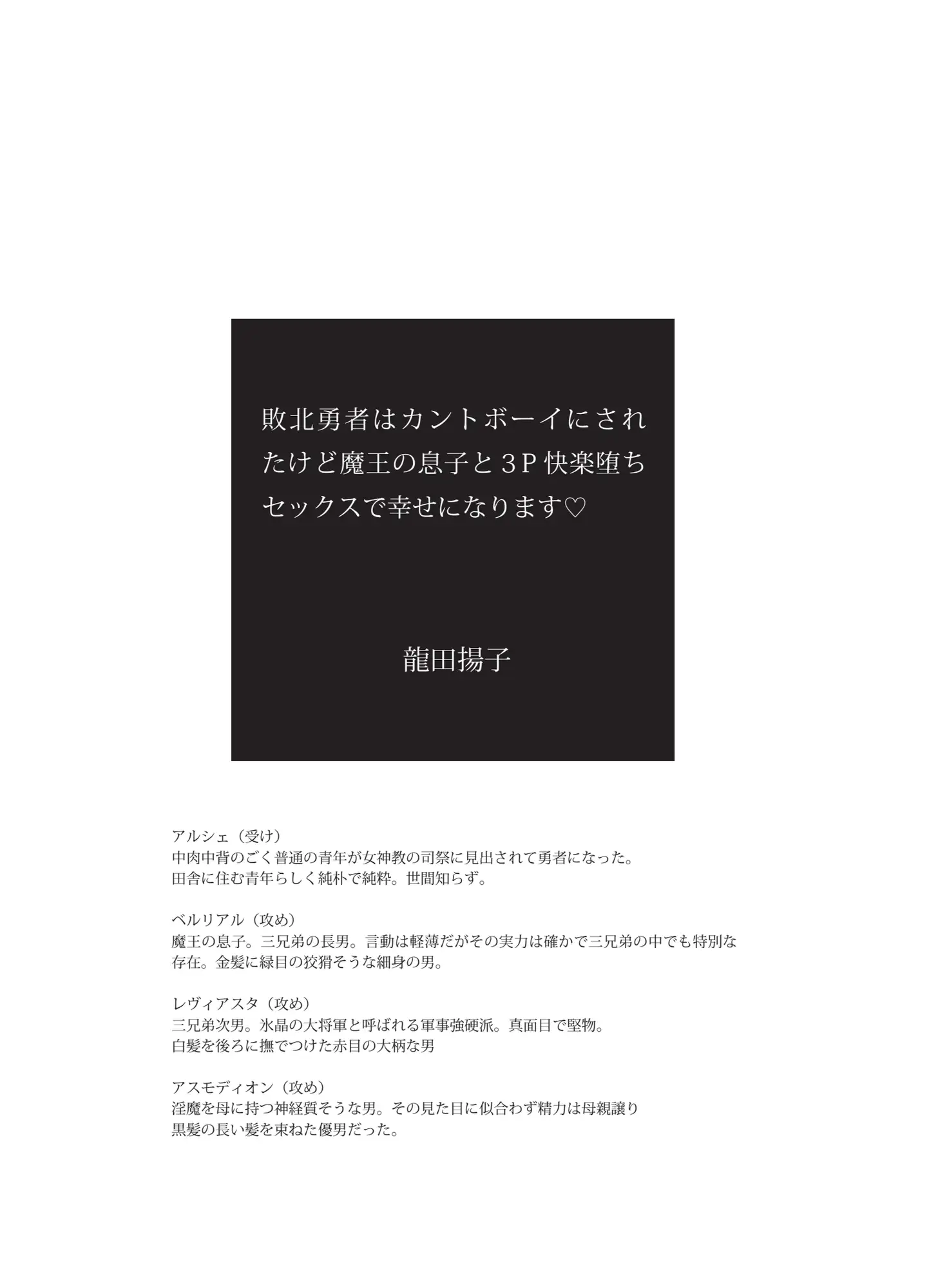 ▶h魔王城に乗り込んだ勇者アルシェは魔王に敗北してしまう。死を覚悟したアルシェはとある寝室に連れてこられ三人の男と出会う。