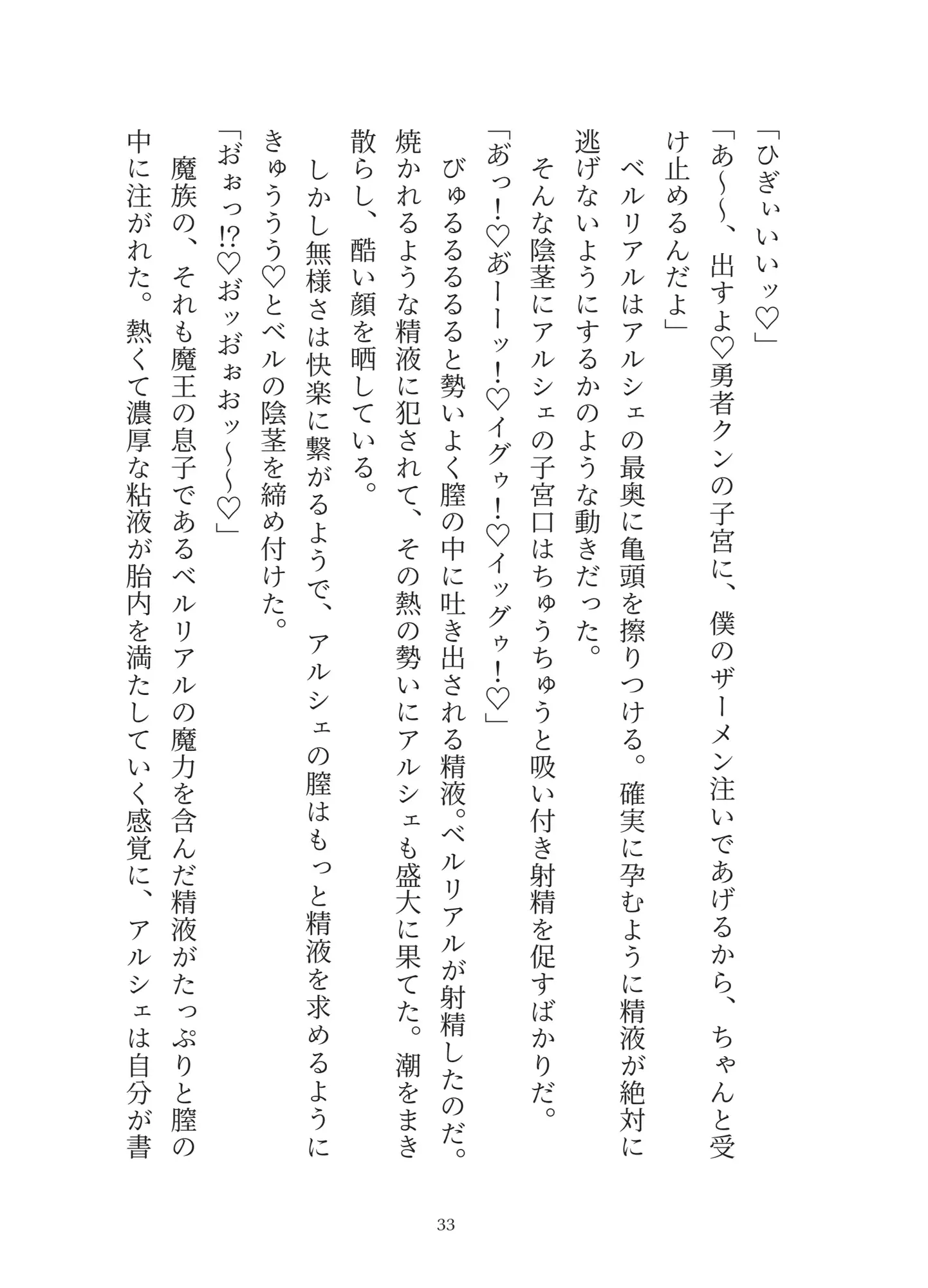 男たちは魔王の息子であると名乗り、次期魔王になるためにアルシェを孕ませると言い張る。
