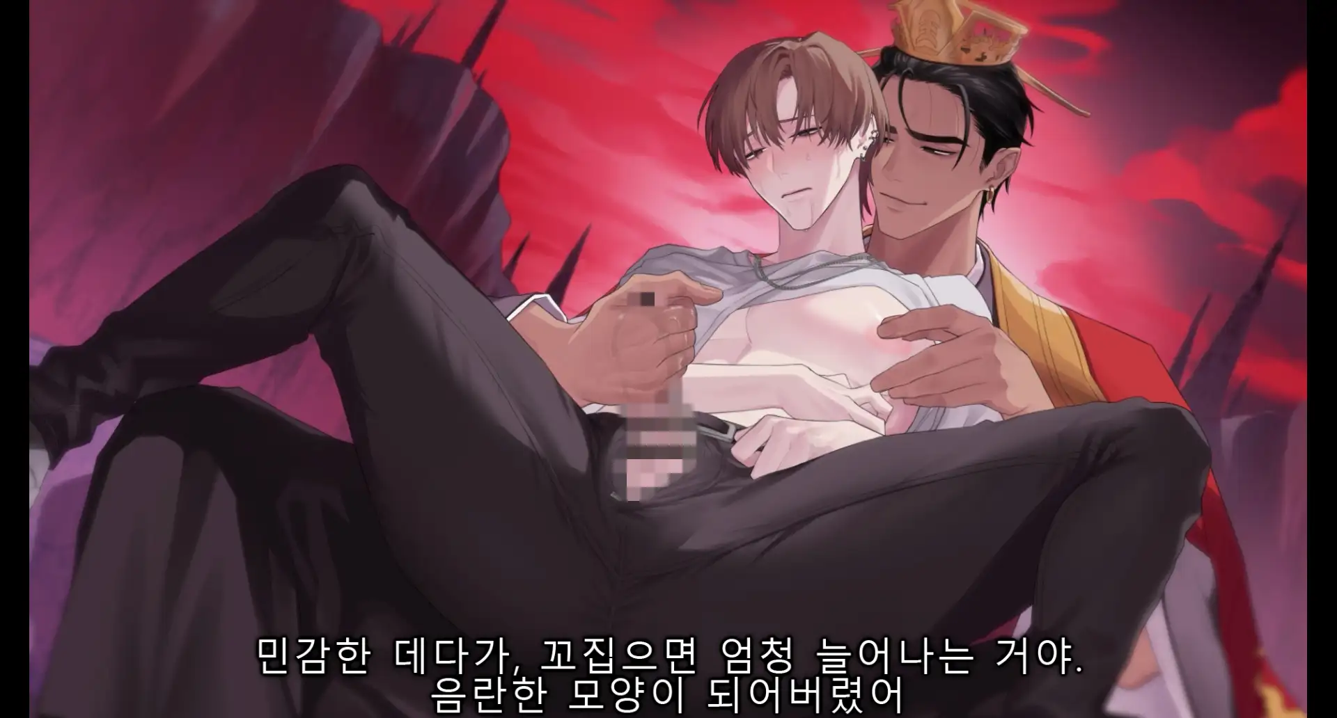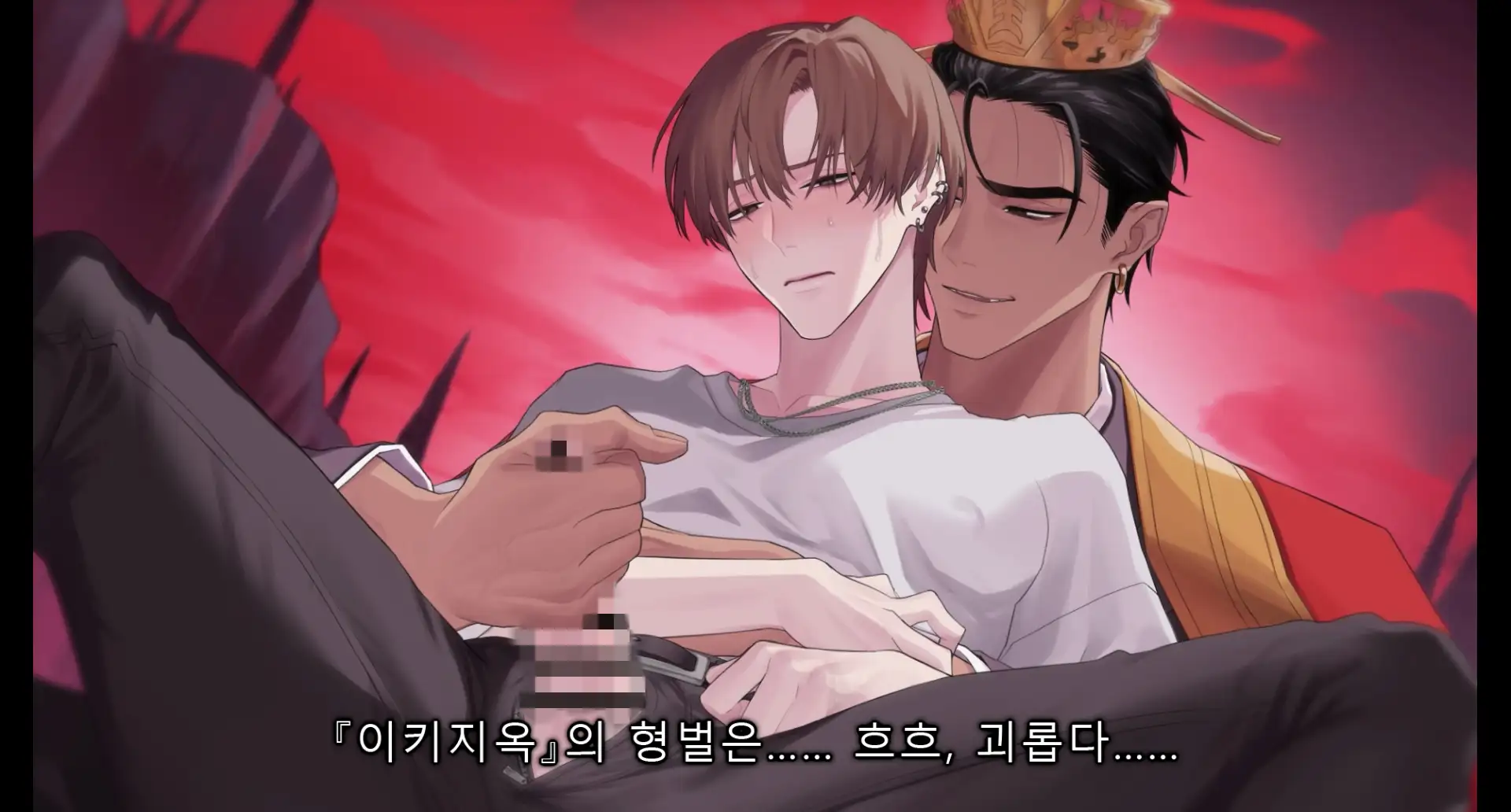 지옥의 시선 아래, 굴욕과 공포, 억눌린 감각이 뒤섞인다.“그만… 제발… 더는…!”