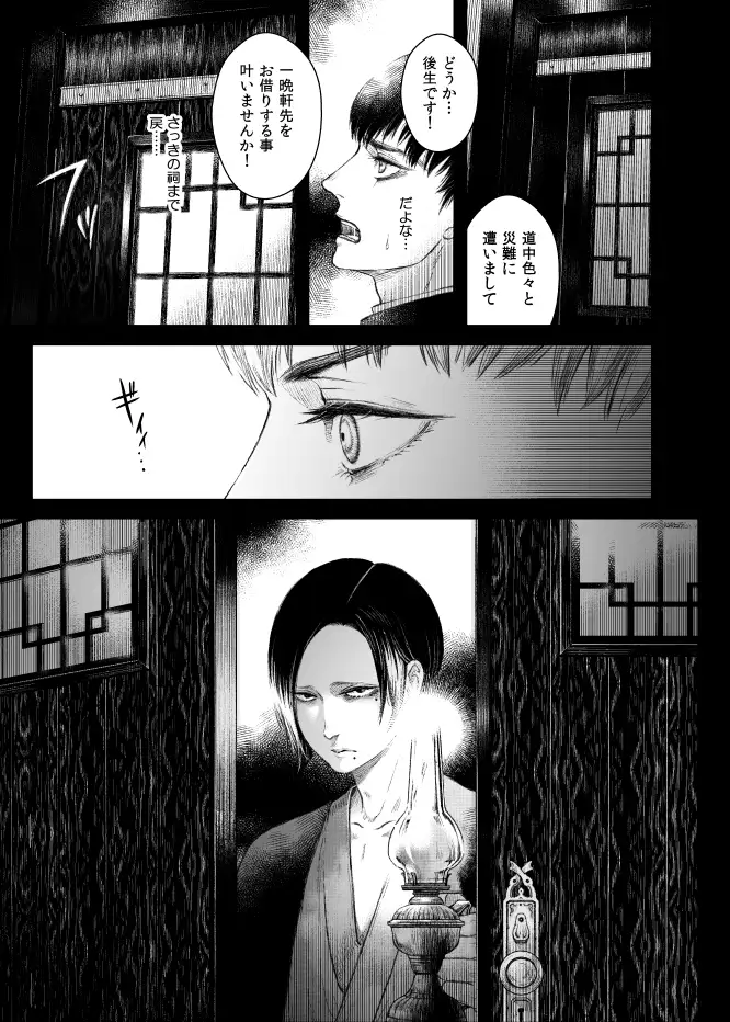 「ああ、俺があの男だったら!」雨の夜、山道で遭難しかけた主人公(書生)は古びた洋館にたどり着く。