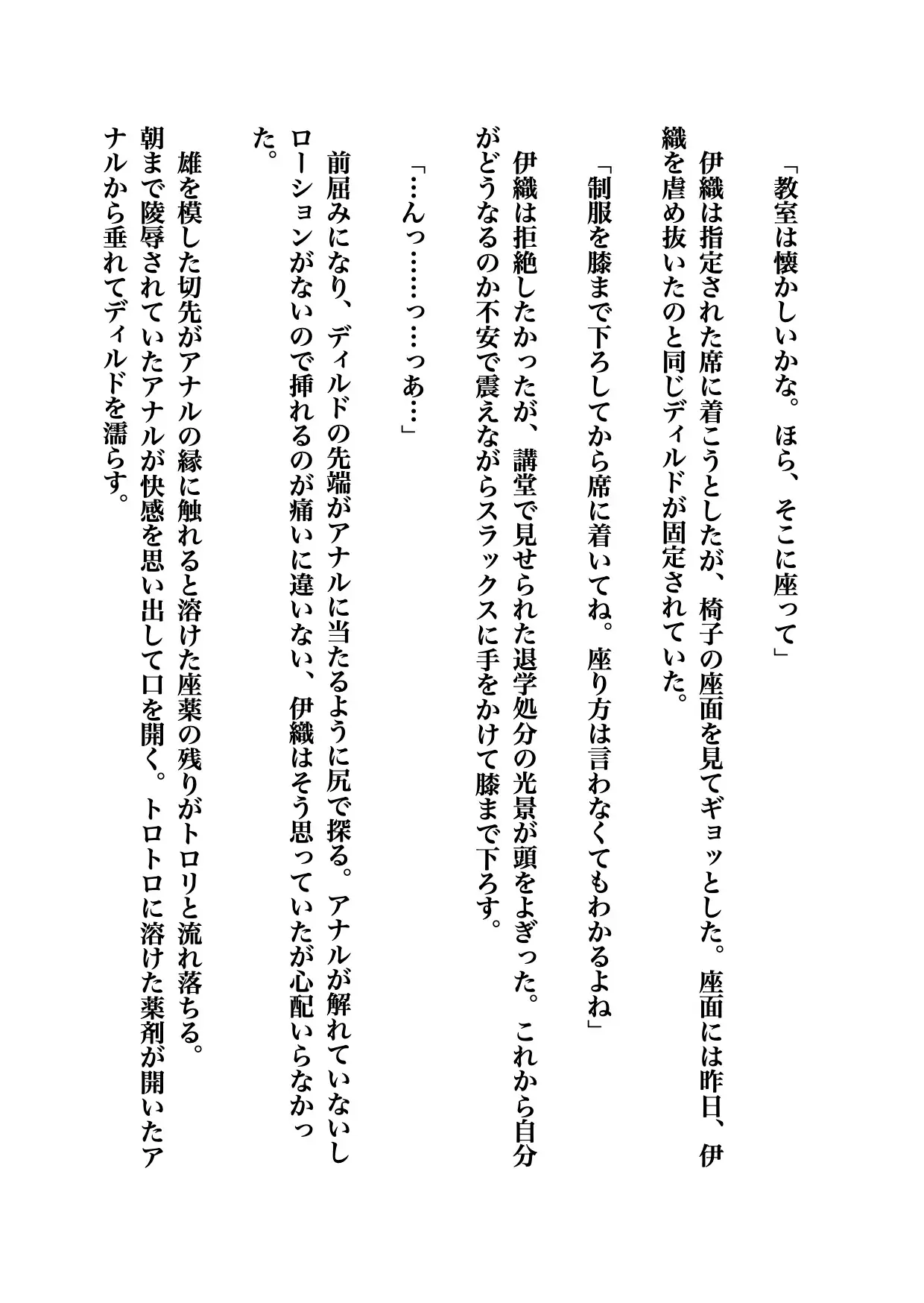 伊織はおじさまと先生の望む体に作り替えられて卒業式とは名ばかりのショーに出される…【本文より抜粋】