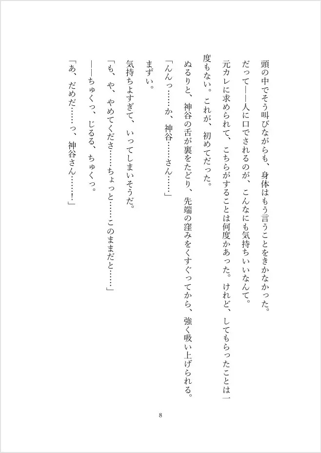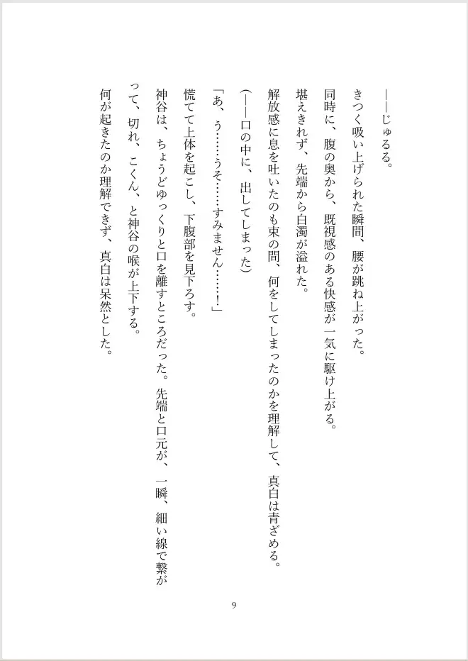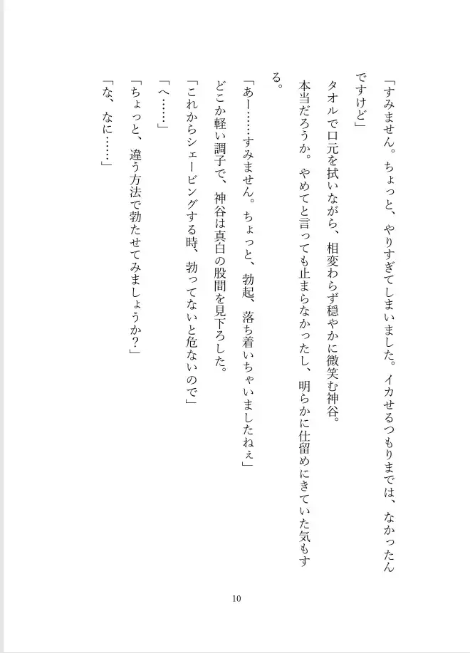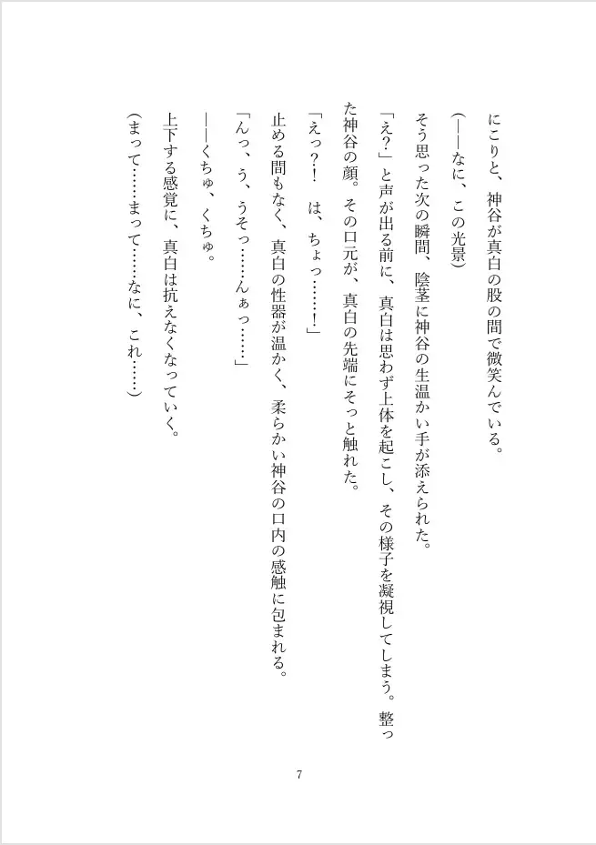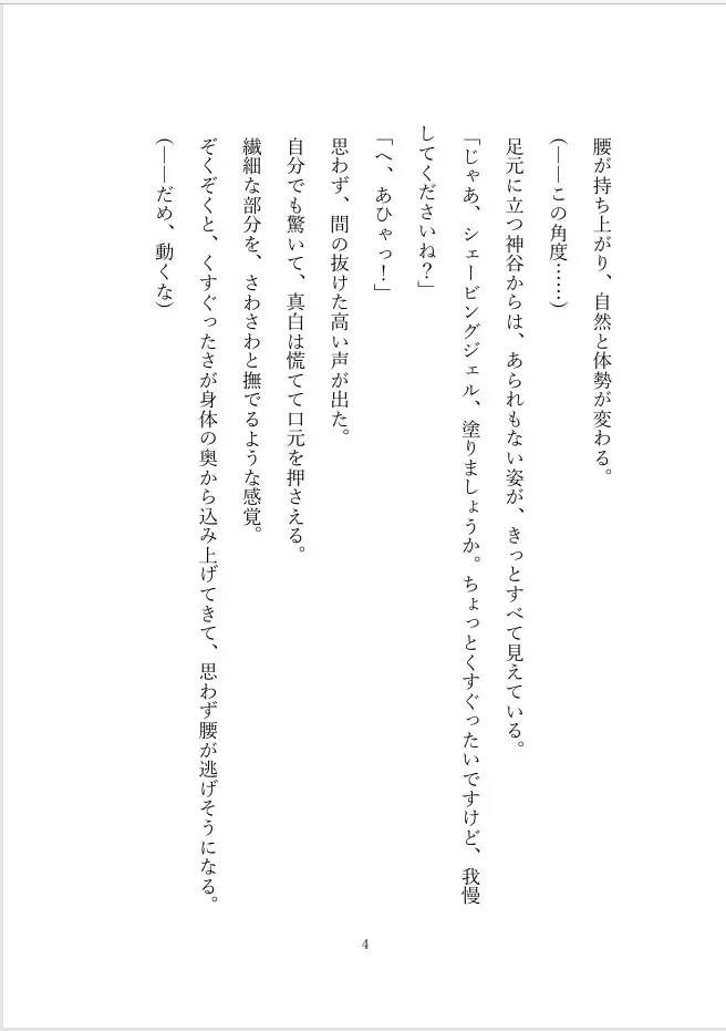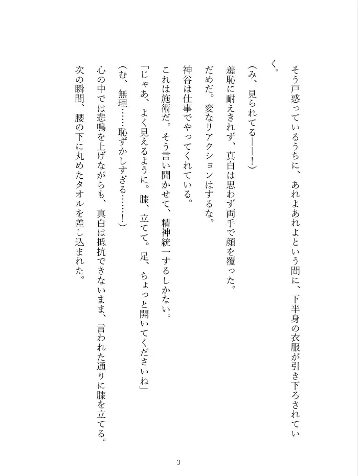 リラックス目的のはずだった施術は、次第に「体の反応」を確かめる内容へと変わっていき――。気づけば、真白は自分でも制御できない快感に翻弄され、神谷の主導で身体を開かされていく。