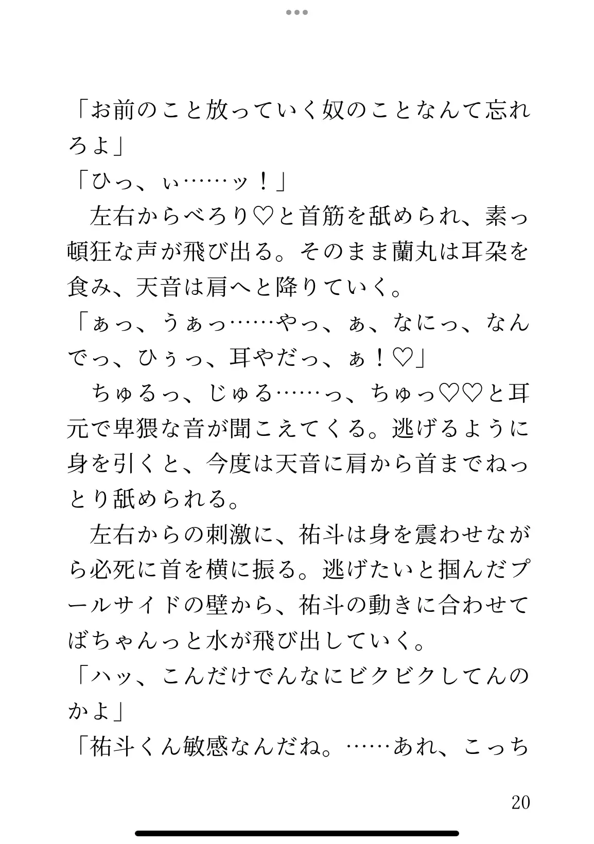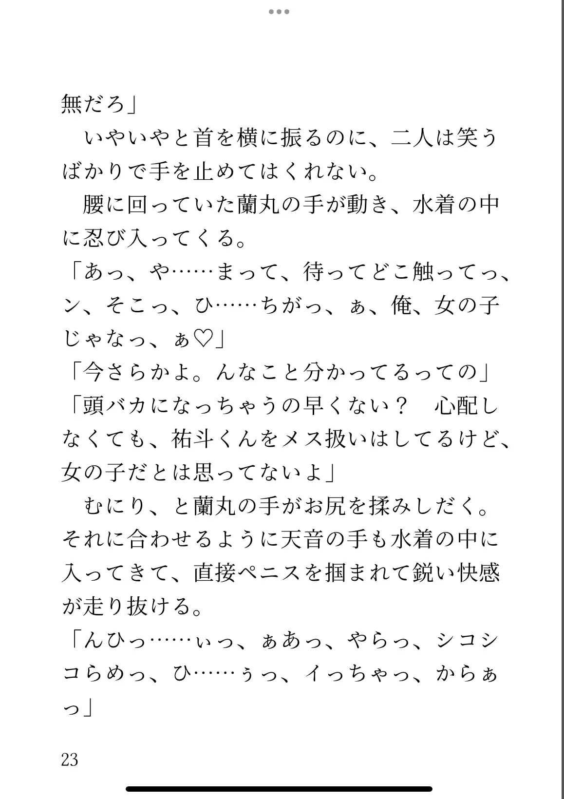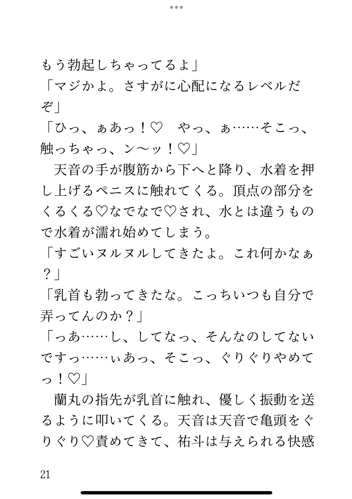 幼馴染みのことが好きで、ナイトプールであわよくばと思っていたのに、気づけば美形二人に囲まれ、敏感な身体を責められていた。蘭丸(らんまる)