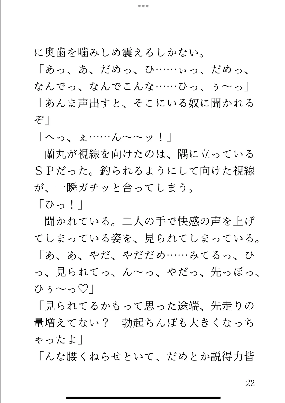 手コキ、手マン、クンニ、正常位、ロールスロイス、駅弁(風)、後背位、中出し、寸止め、連続絶頂、フェラetc.縦書き:95ページ
