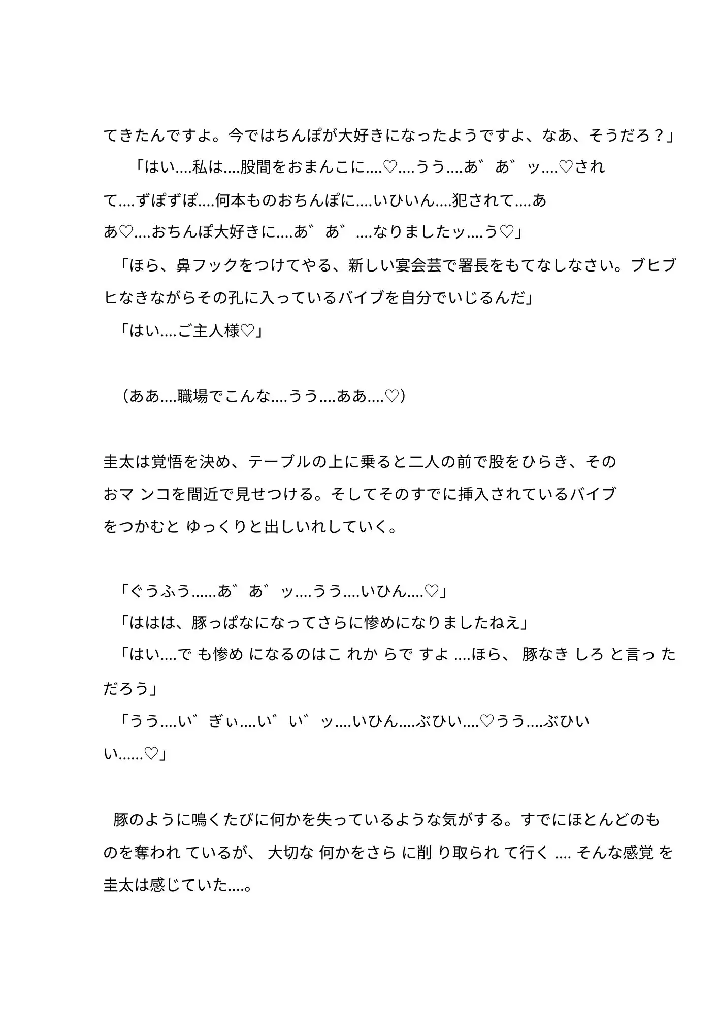 2では圭太の同期や父親も登場します‥‥。ディルド責め、同期や父の前での羞恥、水責め、ベルト打ち、犬扱い、豚扱い、豚鳴き、露出等