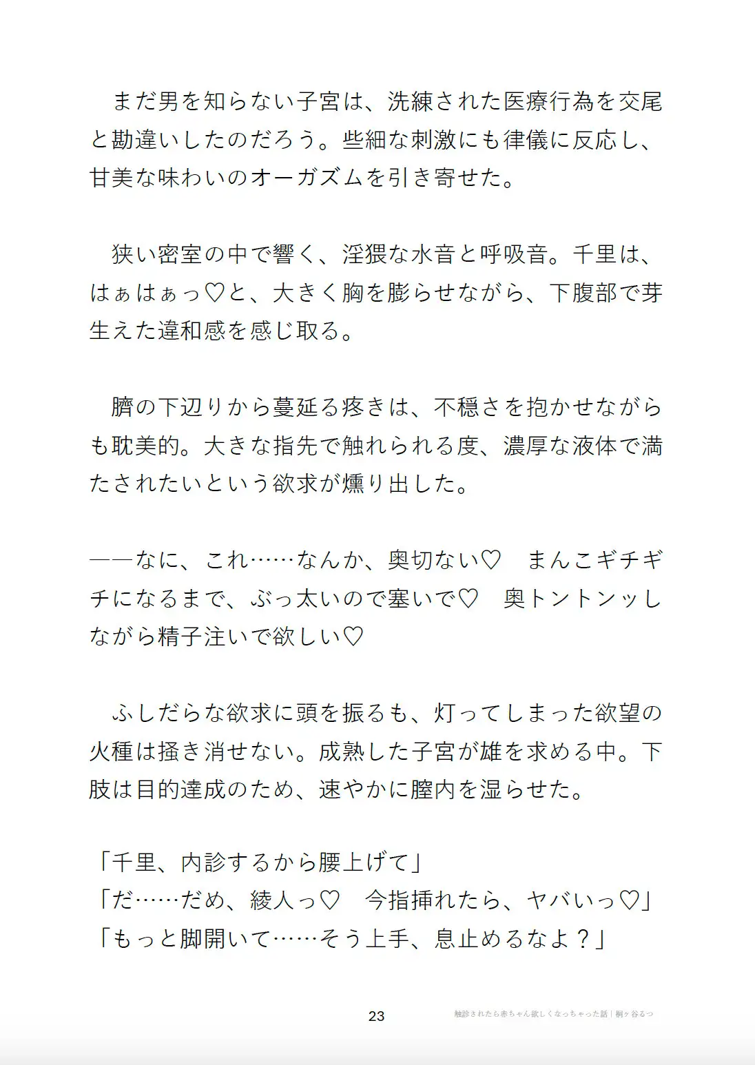 ただの医療行為のはずなのに、触られて疼いた子宮は種付けを求めるようになる…