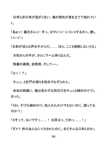 逃げ場のない快感地獄。 前立腺を突かれるたびに飛び散る愛液。 雄のフェロモンに包まれ、たっぷりと種付けされた湊は、義兄だけの「雌」へと堕ちていく――。
