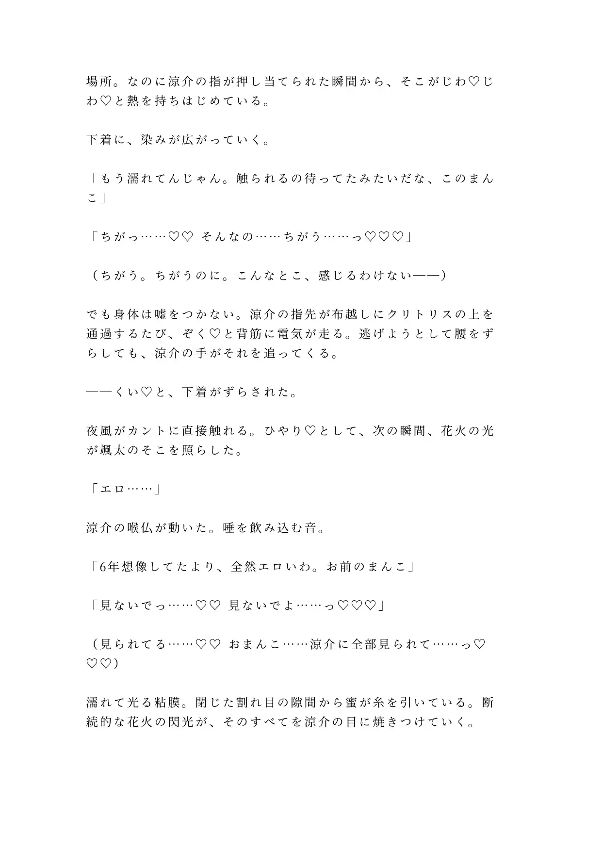 1. 「花火が止むまで帰さないから」河川敷の暗がりで幼馴染に浴衣を剥かれ4回種付けされたカントボーイ大学生の話