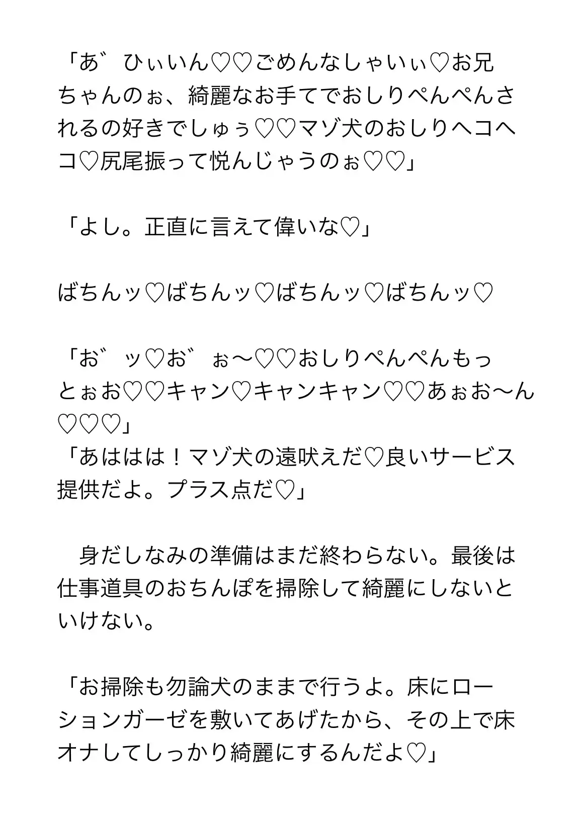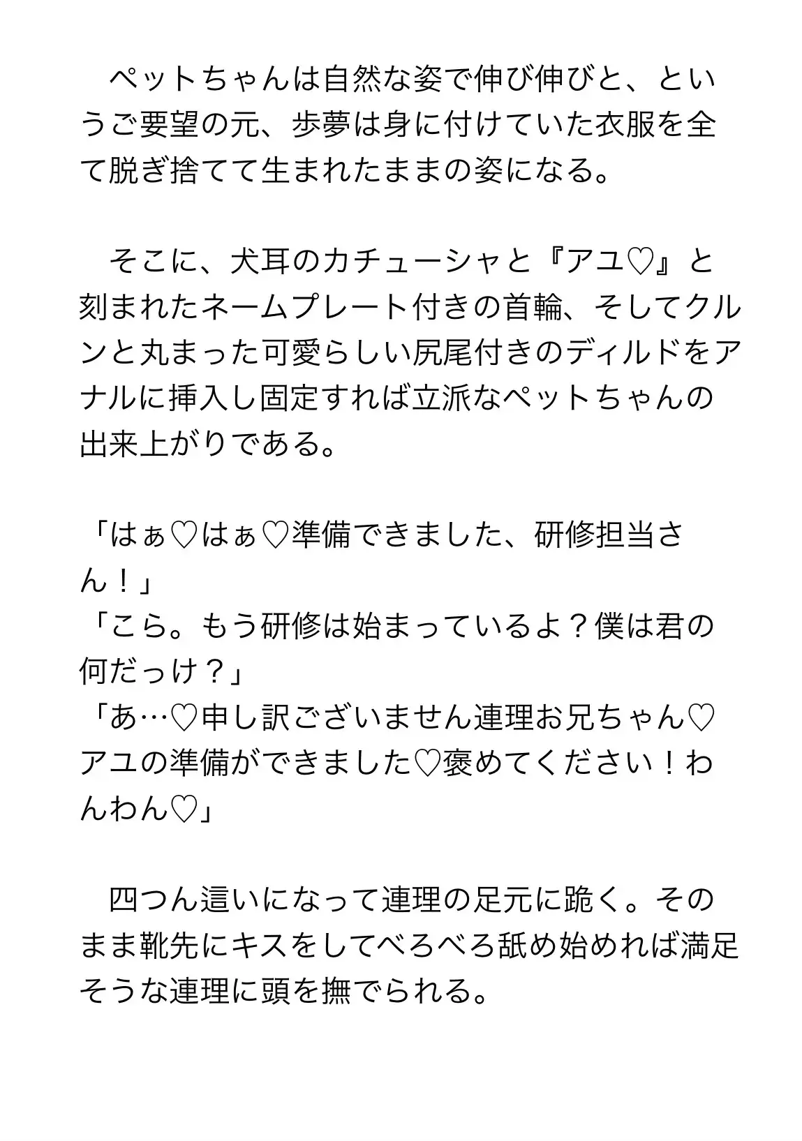 何度も試験に落ちてしまう劣等生のワンちゃん犬居歩夢(いぬいあゆむ)は、研修担当の先輩、茨城連理(いばらきれんり)と今日もお勉強に励む。大好きな人間様のドMなペットちゃんになるために、ドSな担当さんと『お兄ちゃんプレイ』を頑張ります!・お兄ちゃんプレイ