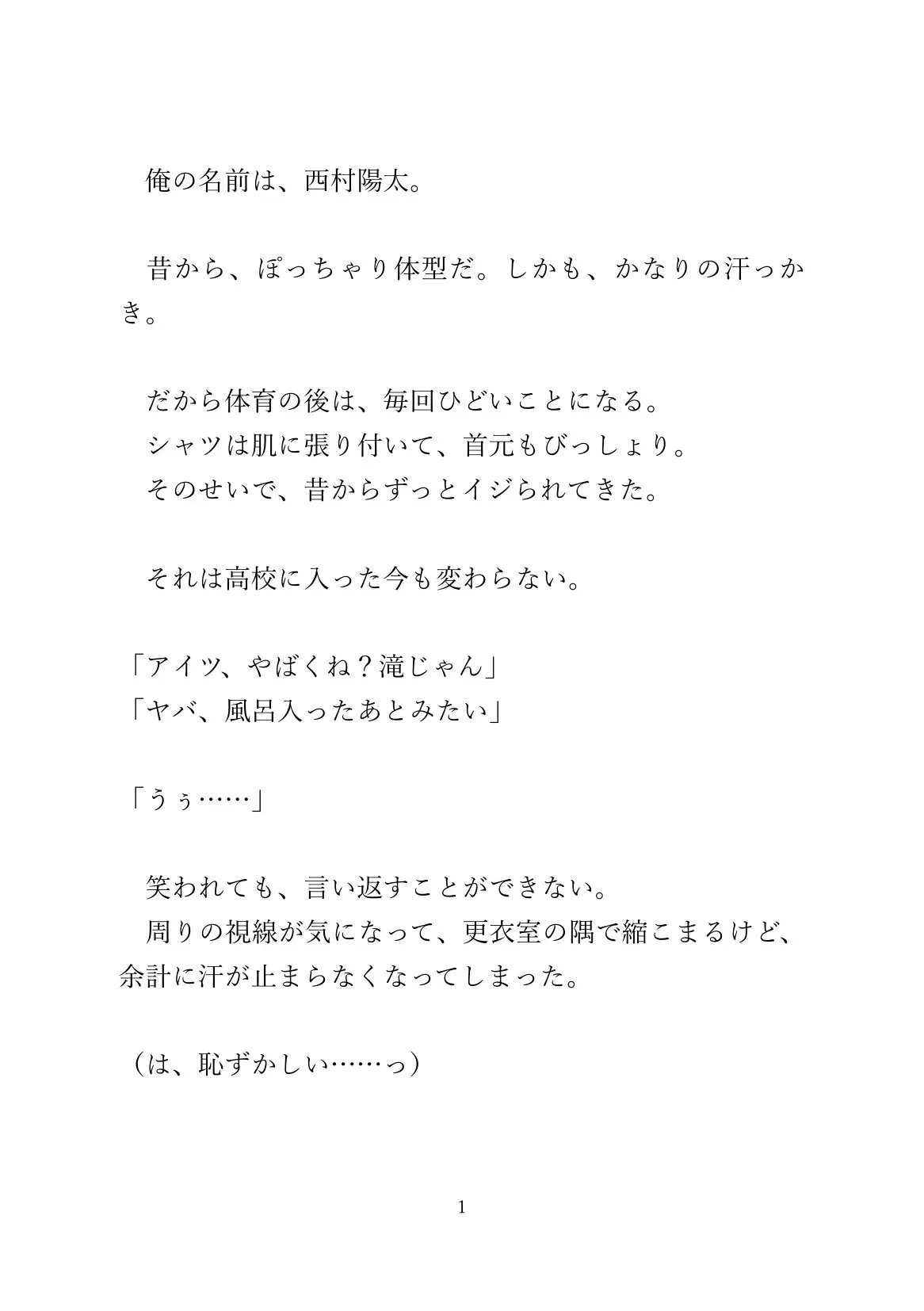 自分の体がコンプレックスのぽっちゃりDKが、唯一クラスで優しくしてくれるイケメンに「おっぱい触らせて?」と頼まれて、流されるがまま汗だく交尾に発展する話。