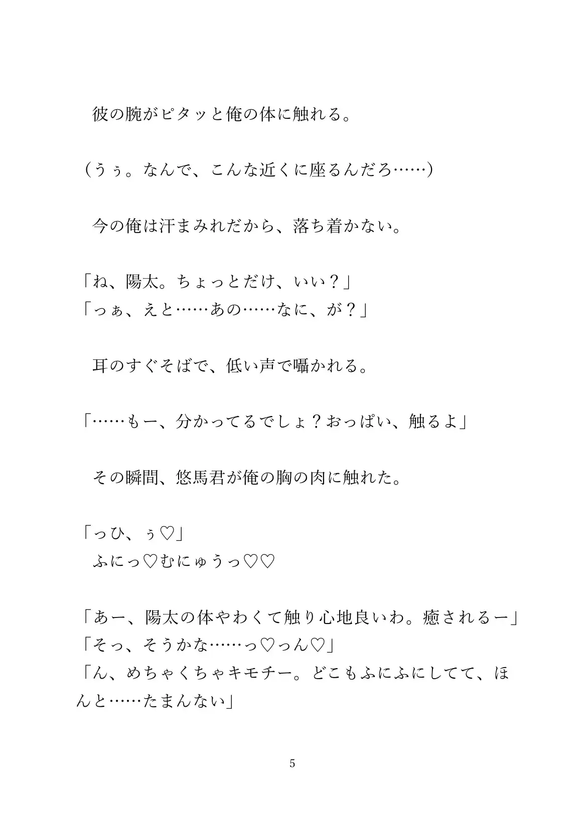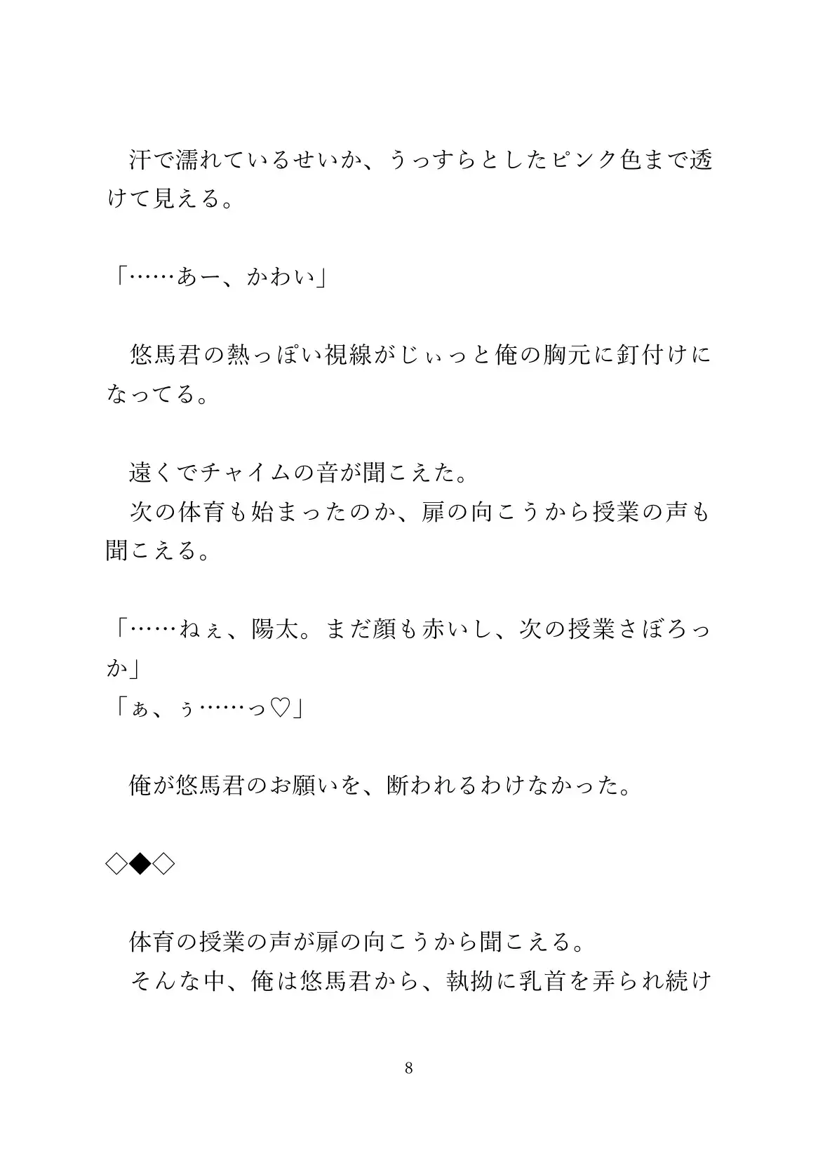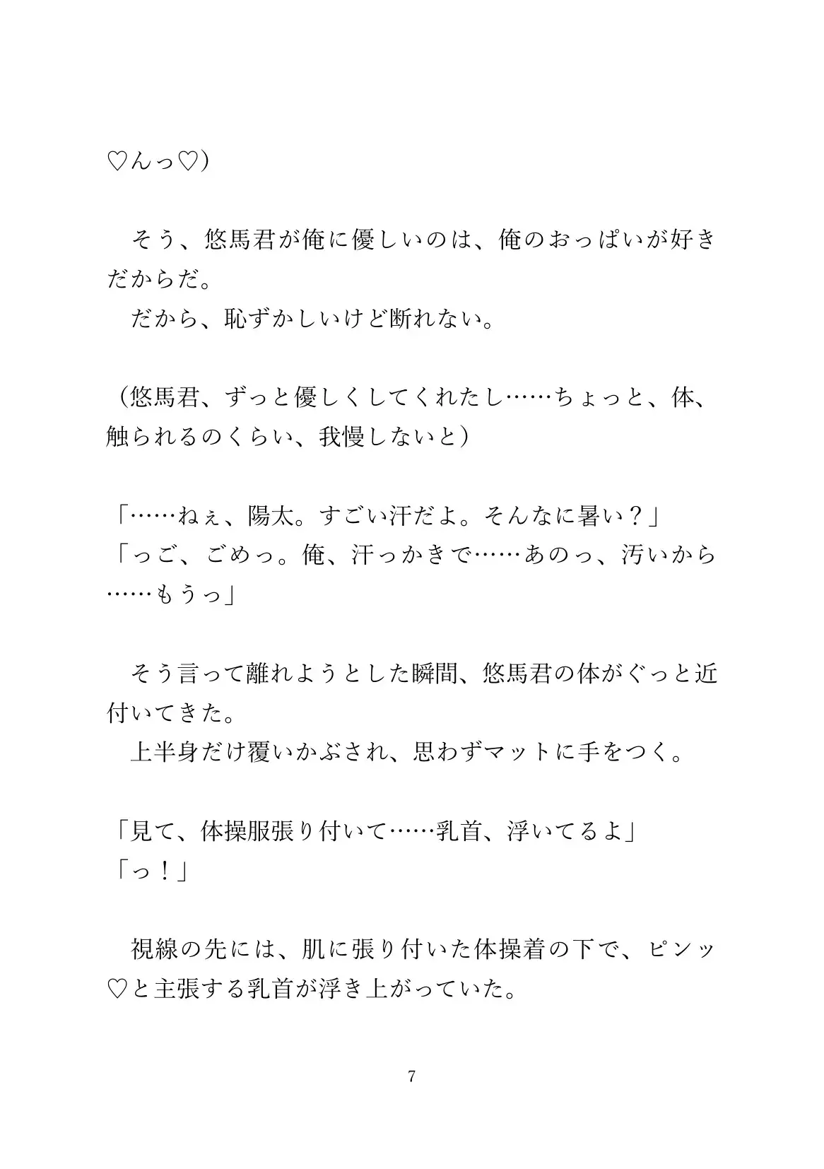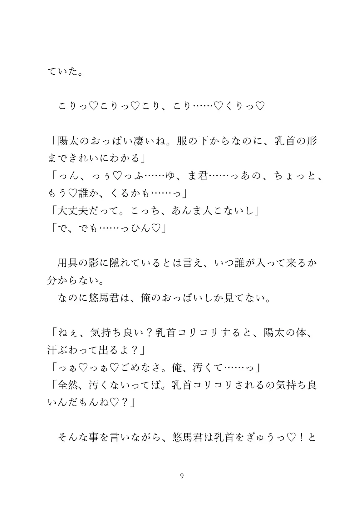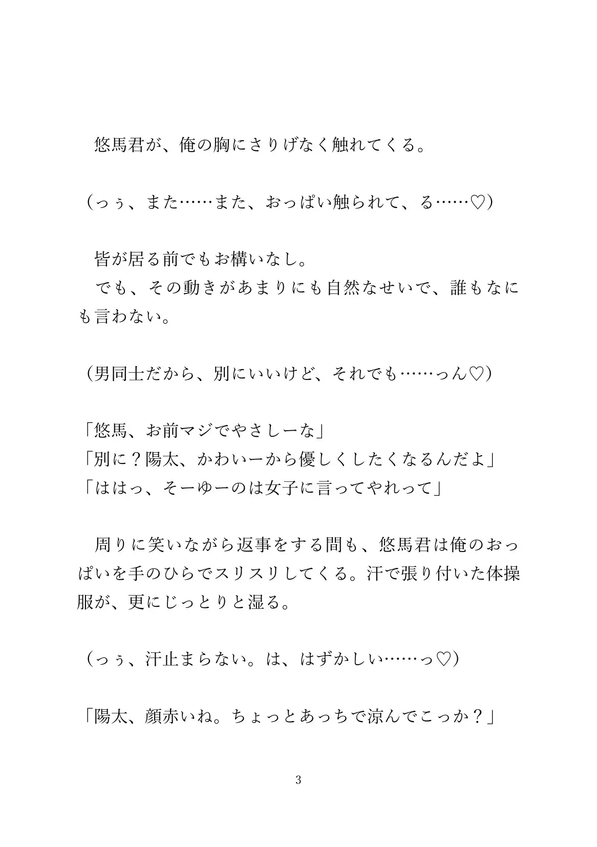 体育のあとおっぱいを弄られてるうちに、発情した攻めに素股されたりします。