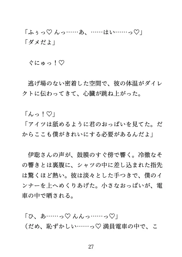 文字数 : 19,3047文字(♡、記号含む)創作BL / カントボーイ / 執着攻め / 電車 / 痴○ / 連続絶頂 / 潮吹き / ♡喘ぎ / 中出し / クリ責め / 乳首責め / 同僚