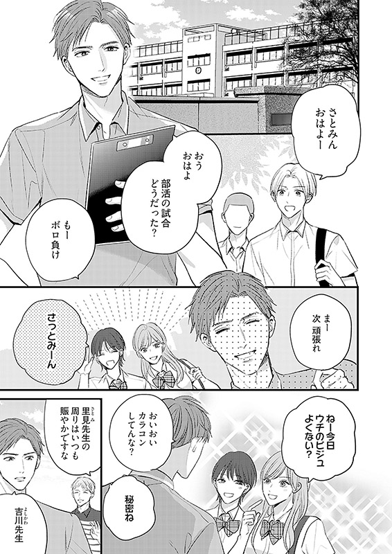同僚教師や生徒から好かれ、抜群のコミュ力を自負する教師の里見には、苦手な男がいる。カタブツで周囲から遠巻きにされてる、隣クラス担任の有村だ。ルールに厳しく、プライベートな会話や誘いを一切受け付けない有村は、まさに鬼門の相手。そんなある日、「有村先生の背中には龍がいる」という不穏な噂を耳にした里見は有村と視聴覚室で二人きりになって…?