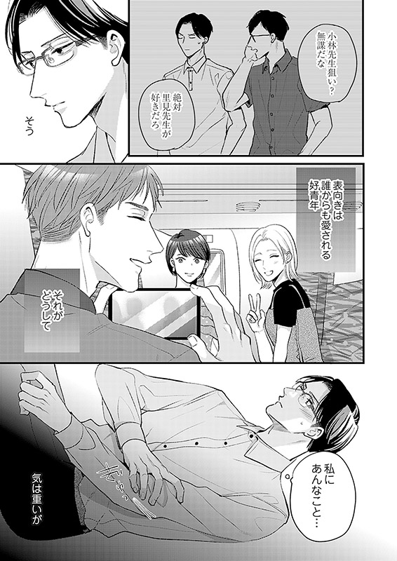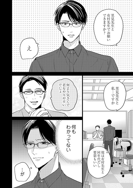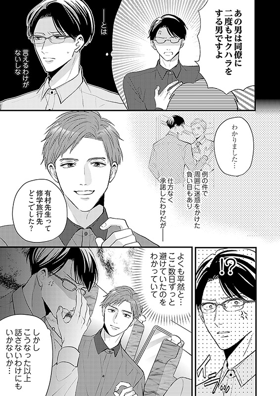同僚教師や生徒から好かれ、抜群のコミュ力を自負する教師の里見には、苦手な男がいる。カタブツで周囲から遠巻きにされてる、隣クラス担任の有村だ。ルールに厳しく、プライベートな会話や誘いを一切受け付けない有村は、まさに鬼門の相手。そんなある日、「有村先生の背中には龍がいる」という不穏な噂を耳にした里見は有村と視聴覚室で二人きりになって…?