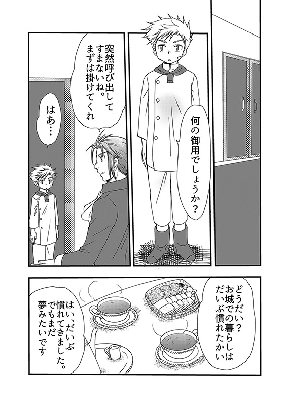 異国の郷土料理の屋台を開いていたキルは近衛隊長のグレイに料理の腕を見込まれ、城での仕事を誘われる。