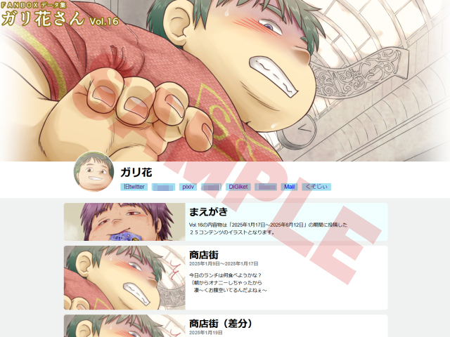 デブ体型な男の子を中心に、年齢は様々なごった煮イラスト集です。This is a collection of 25 illustrations posted on the support site between January 17, 2025, and June 12, 2025.