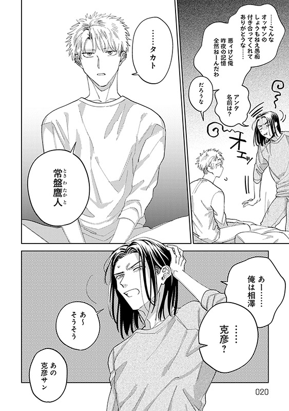 8年付き合った恋人に振られ失意のどん底にいた相澤克彦が朝目覚めると隣には見覚えのある青年の姿があった。