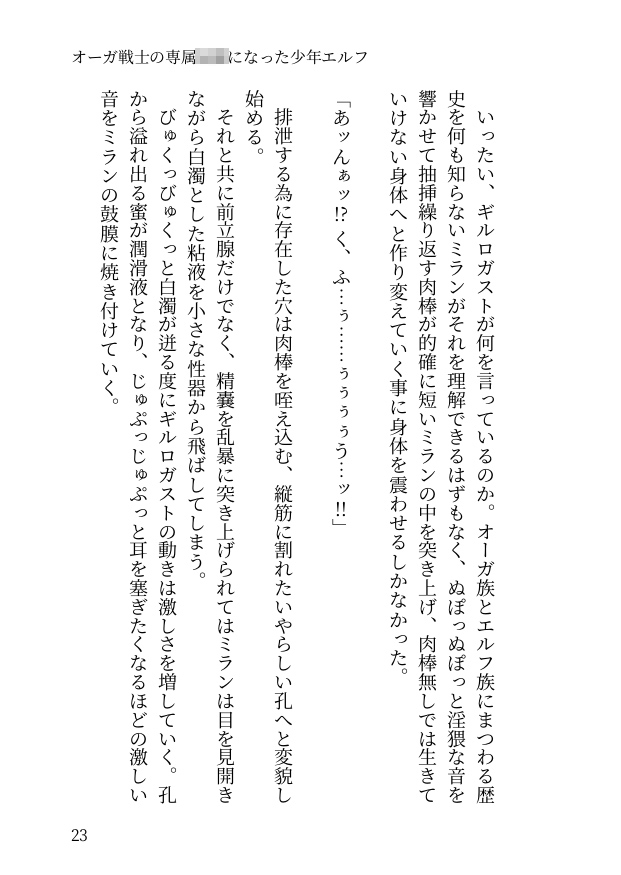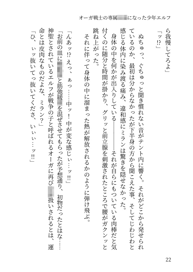 何も知らない無垢な少年は自分よりも二回り以上、大きな男に組み伏せられ、血に刻まれた○○としての性に抗えなくなっていく……。小説 40p(本文34p+あとがき1p+表紙等5p)