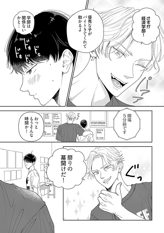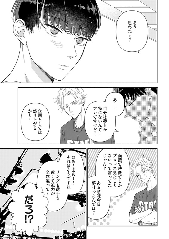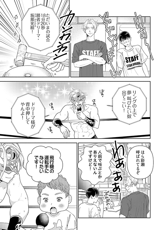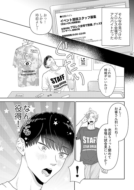 【描き下ろし番外編8Pを新たに収録】「俺達…ここで会えたの、運命じゃない?」大学三年で内定ゼロの彩瀬が始めたのはイベント会社のアルバイト。プロレス興行の物販は自分のコツコツとした性格に向いてるけれど、会社の人はノリと勢いで生きていそうでちょっと苦手だ。そのうえ社長の未波さんは、人との距離が近すぎる! そのテンションにぐいぐいと巻きこまれ、彩瀬の世界は変わっていき…。