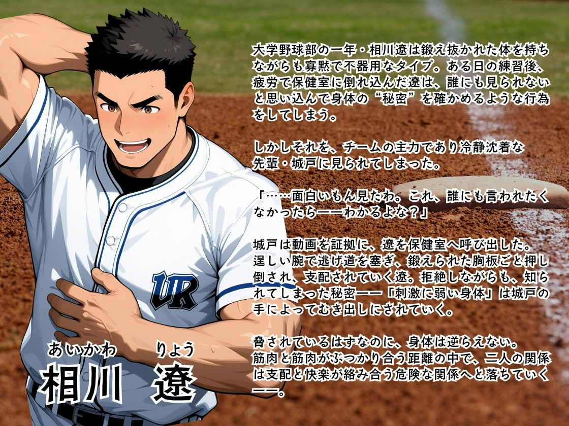 大学野球部の一年・相川遼は鍛え抜かれた体を持ちながらも寡黙で不器用なタイプ。ある日の練習後、疲労で保健室に倒れ込んだ遼は、誰にも見られないと思い込んで身体の秘密”を確かめるような行為をしてしまう。