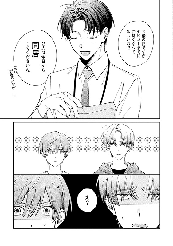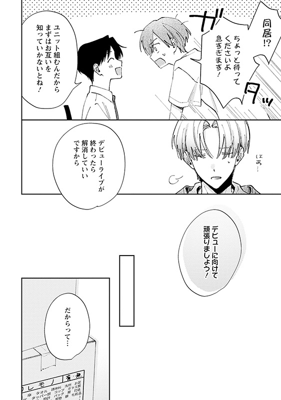 俺があのキラキラしたアイドルに!? と驚く将悟だったが、なんとユニット相手・保坂佑真(ほさかゆうま)との同居も決定してしまった!!不愛想な佑真とやっていけるか不安な将悟だったが、