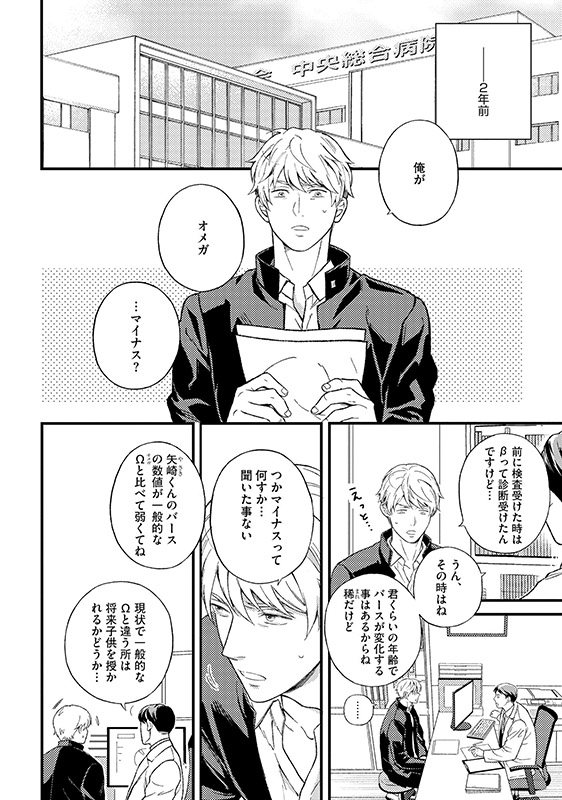 典型的なαである黒川からもフェロモンを感じず、もしや自分は限りなくβなのではと安心する矢崎。