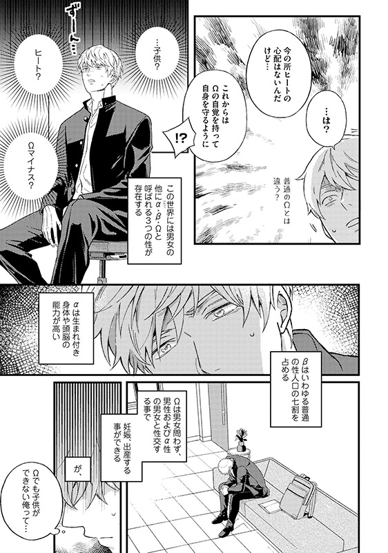 ごく普通の生活を送っていたところ、突然βからΩ-(マイナス)という診断をされた。
