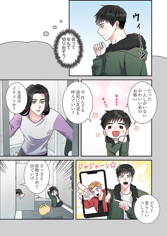 ソファに座る剛のすぐ隣に腰を降ろすイケメンの距離感に、気まずい空気を感じながらも思わずその美貌の横顔に見惚れてしまう。するとイケメンに突然押し倒され――!?