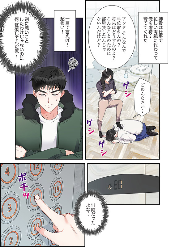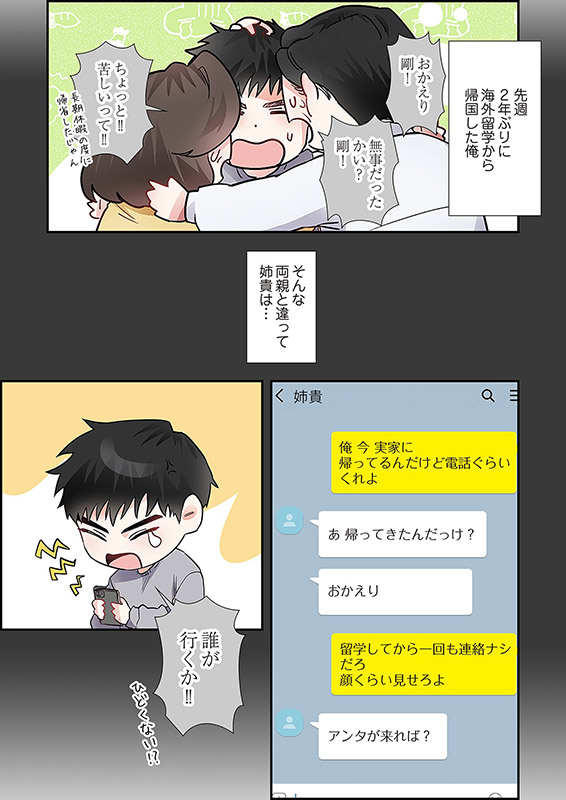 海外留学から2年ぶりに帰国した剛が姉のマンションを訪ねると、出てきたのは半裸のイケメンだった。外出した姉の帰りを謎のイケメンと二人きりで待つことに。