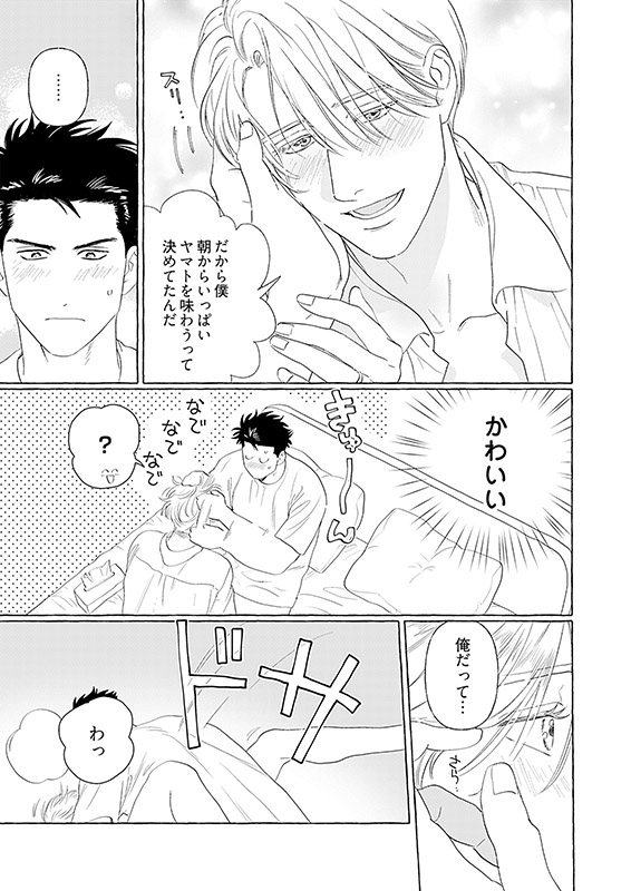 実家暮らしの大学生・大和(やまと)は、ある日ホストファミリーとして留学生のスミスを受け入れることに。一目見たときからドタイプで内心ドキドキな大和は、風呂場で偶然スミスの裸を見てしまう。