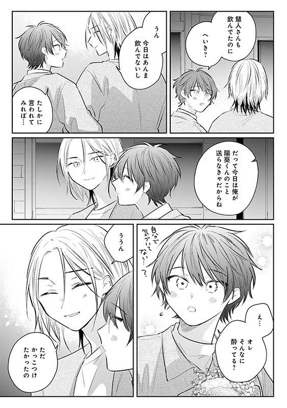 次の日、思い切って同棲の提案をするも、「俺なんか」という言葉で拒否されてしまった陽葵は、前日の幸せな時間とは打って変わり怒りに任せ家を飛び出してしまい──。大人気エモきゅんBL