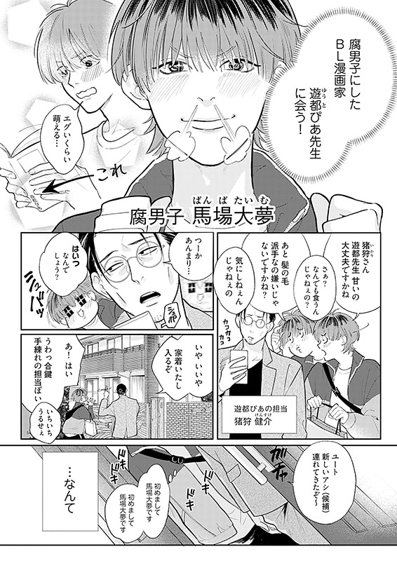 先が読めない展開、キャラクターのリアルな感情…遊都(ゆうと)ぴあ先生は天才だ! 腐男子の馬場(ばんば)は、先生に心酔するあまりアシスタントに応募してしまう。無事採用され、憧れの先生とドキドキ初対面――と思いきや、え…先生が玄関先でしゃぶられてる…!? フリーズする馬場をよそに、これは創作作業の一環だと言い放つ先生。