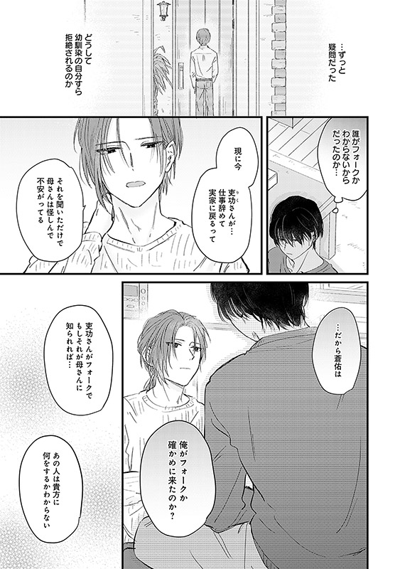 そんな世界で”フォーク”と診断された吏功は、ある日”ケーキ”である幼馴染の蒼佑に「俺と一緒に暮らさない?」と提案される。いつ襲ってしまうかも分からない自分に恐怖を感じ「駄目に決まってるだろ」と伝えるが、蒼佑の吏功を守りたいという強い想いに動かされ一緒に住むことを決意する。