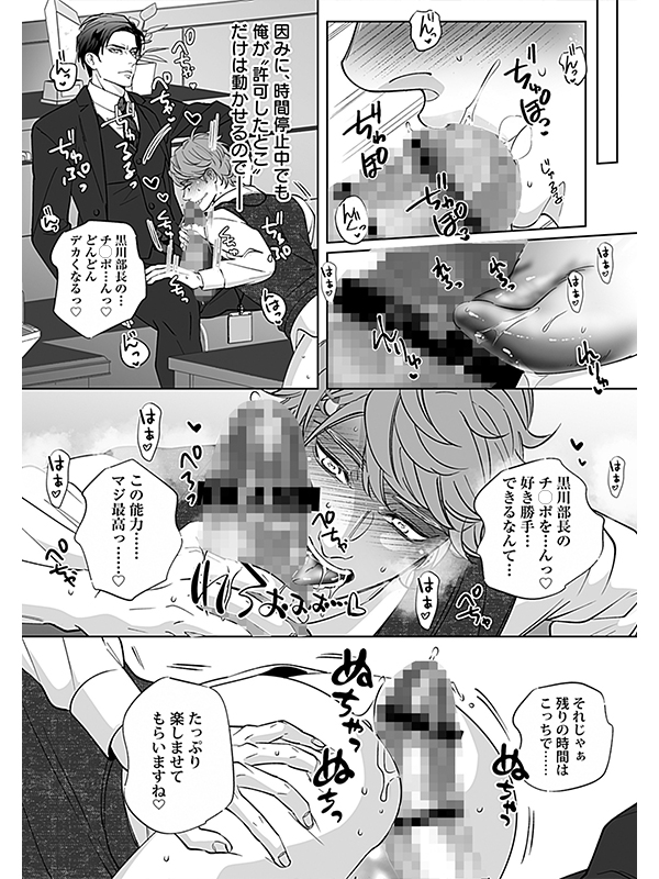 全くと気付いていない三浦は、今日も時間を止めた世界で目いっぱい黒川のモノを堪能する。しかし――……