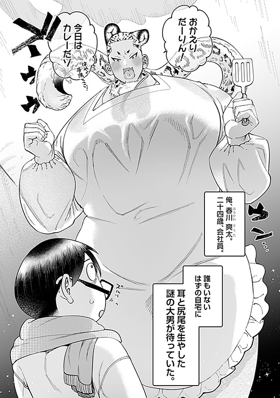 ある日、会社から帰宅すると耳と尻尾を生やした大男がフリフリエプロンでお出迎え…!?