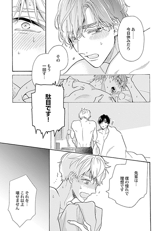 「誰でもいいからむちゃくちゃに抱いてくれねぇかな…」という呟きを聞いてしまう。そして、目が覚めると横には裸の先輩が――…!!?